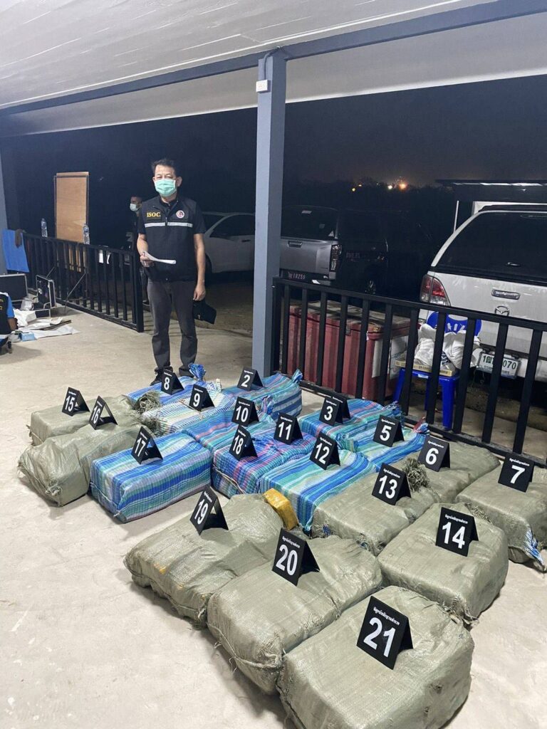 - ยาบ้า จำนวน 18 กระสอบ จำนวน 1,796 มัด (ประมาณ 3,592,000 เม็ด)