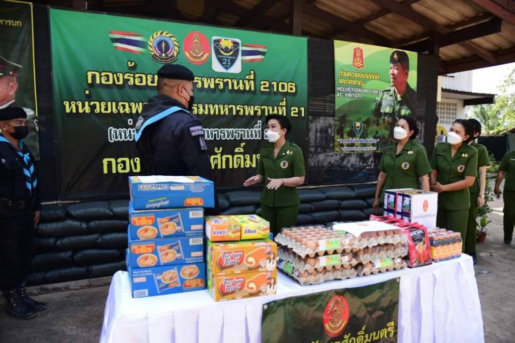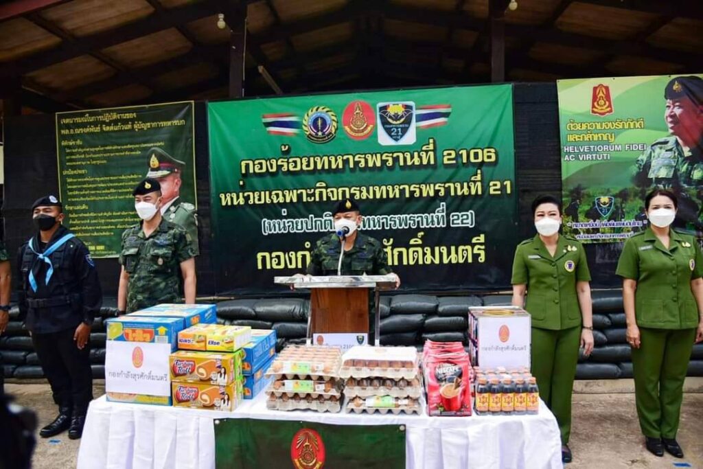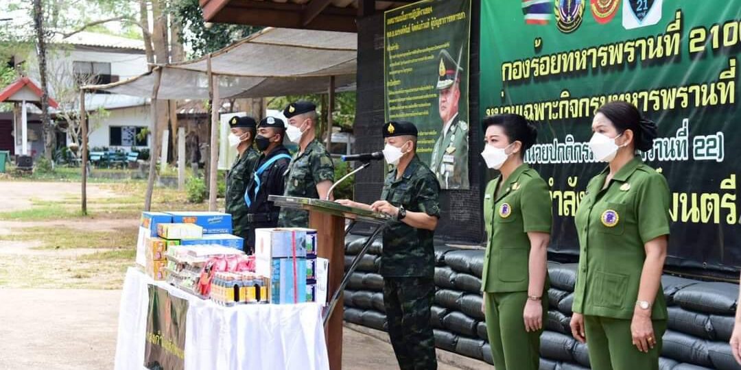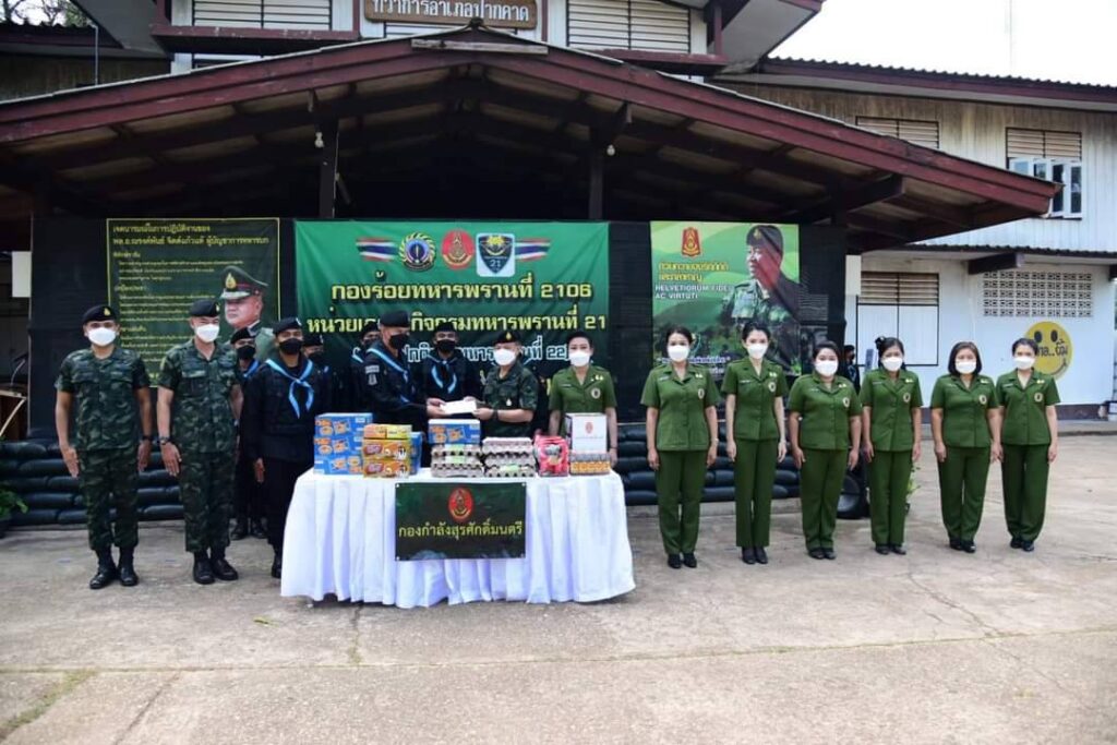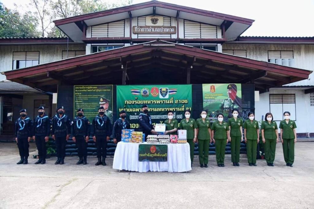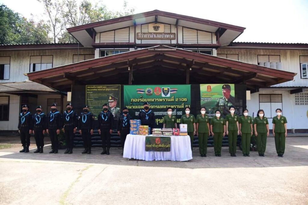 เมื่อวันที่ 4 กุมภาพันธ์ 2565 พลตรี ณรงค์ สวนแก้ว ผู้บัญชาการกองกำลังสุรศักดิ์มนตรี พร้อมด้วย สมาคมแม่บ้านทหารบกสาขากองพลทหารราบที่ 3 และคณะ ได้เดินทางพบปะตรวจเยี่ยมให้กำลังใจ และมอบสิ่งของบำรุงขวัญให้กับกำลังพล กองร้อยเฉพาะกิจทหารพรานที่ 2106 เพื่อเป็นขวัญกำลังใจให้กับกำลังพลที่ปฏิบัติงานตามแนวชายแดน โดยมี พันเอก อุทัย นิลเนตร ผู้บังคับการกรมทหารราบที่ 21 ให้การต้อนรับ ในโอกาสนี้ ผบ.กกล.สุรศักดิ์มนตรี ได้ให้โอวาท โดยเน้นย้ำการป้องกันและปราบปรามการกระทำสิ่งผิดกฎหมายตามแนวชายแดน การลักลอบหลบหนีเข้าเมืองโดยผิดกฎหมายตามแนวชายแดน และการขจัดภัยคุกคามของประเทศชาติทุกรูปแบบ โดยเฉพาะ การลักลอบหลบหนีเข้าเมืองในปัจจุบันเพิ่มมากขึ้นทำให้การปฏิบัติภารกิจของเจ้าหน้าที่ยากลำบากยิ่งขึ้น ขอให้ปฏิบัติงานด้วยความระมัดระวังและนำยุทโธปกรณ์พิเศษมาใช้ในการเฝ้าตรวจ รวมทั้งการประสานความร่วมมือกับหน่วยงานในพื้นที่อย่างใกล้ชิด รวบรวมข้อมูล พยานหลักฐาน และติดตามการปฏิบัติทุกขั้นตอน นำไปสู่ต้นตอของขบวนการนำพา และดำเนินคดีตามกฎหมายต่อไป พร้อมให้กำลังใจเจ้าหน้าที่ทุกคนในการดูแลพื้นที่ชายแดน ให้ปฏิบัติงานอย่างเต็มกำลัง เพื่อประเทศชาติ สร้างความเชื่อมั่น และความปลอดภัยให้แก่พี่ น้องประชาชน พร้อมทั้งให้ข้อห่วงใยในการปฏิบัติงานและการป้องกันตนเองในห้วงสถานการณ์ COVID-19 ณ ฐานปฏิบัติการกองร้อยเฉพาะกิจทหารพรานที่ 2106 หน่วยเฉพาะกิจทหารพรานที่ 21 ต.โนนศิลา อ.ปากคาด จ.บึงกาฬ