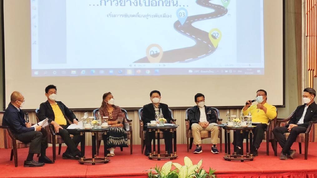 จุดแรกที่ห้องออร์คิด บอลรูม 3 โรงแรมพูลแมน ขอนแก่น กับเวทีแลกเปลี่ยนประเด็นการบริหารจัดการเมืองอย่างยั่งยืน ถอดบทเรียน “Khon Kaen Smart City and Low Carbon City” โดยนายธีระศักดิ์ ฑีฆายุพันธุ์ นายกเทศมนตรีนครขอนแก่น พร้อมผู้เกี่ยวข้อง อธิบายถึงโครงการขนส่งมวลชนรางเบา (LRT) ของบริษัท ขอนแก่น ทรานซิท ซิสเต็ม จำกัด วิสาหกิจของ 5 เทศบาลในจังหวัดขอนแก่น ที่เป็นการพัฒนาด้านคมนาคมเพื่อรองรับการขยายตัวด้านการจราจรของเมือง