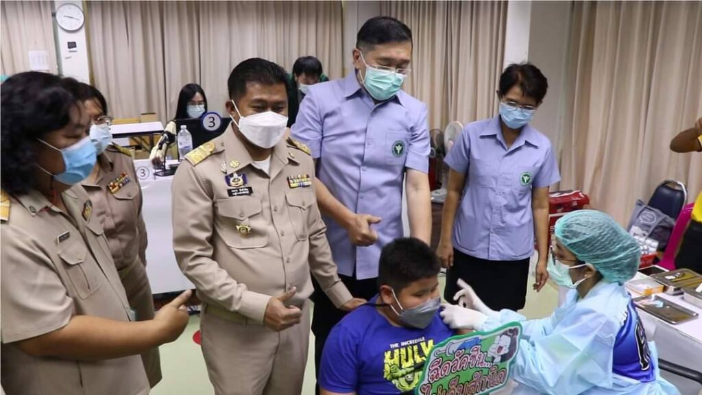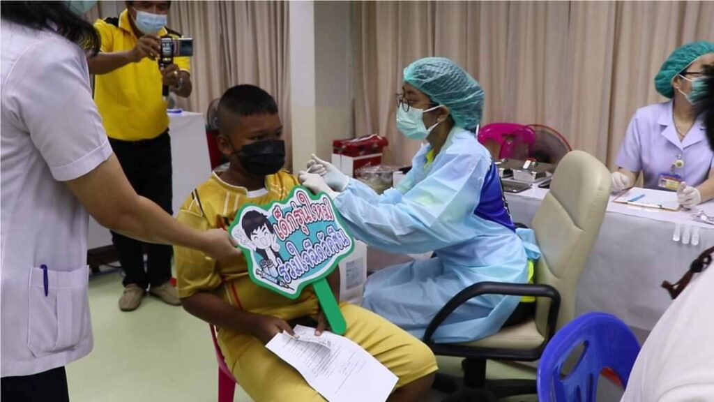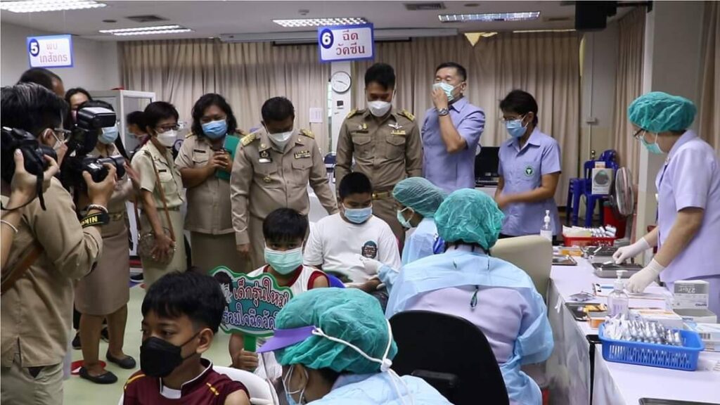 วันที่ 7 กุมภาพันธ์ พ.ศ.2565 เวลา 9.00 น. นายสมชาย ลีหล้าน้อยรองผู้ว่าราชการจังหวัดสิงห์บุรีเป็นประธาน Kick off ฉีดไฟเซอร์เด็กอายุ 5-11 ปี กลุ่ม 7 โรคเรื้อรัง จำนวน 29 คน โดยมี นายโชคชัย สาครพานิช นายแพทย์สาธารณสุขจังหวัดสิงห์บุรี พร้อมคณะผู้บริหารร่วมให้การต้อนรับพร้อมทั้งพาเยี่ยมชม ให้กำลังใจเด็กผู้เข้ารับบริการ และเจ้าหน้าที่ที่ปฏิบัติหน้าที่ ณ ศูนย์ฉีดวัคซีนโควิด19 โรงพยาบาลสิงห์บุรี และศูนย์ฉีดวัคซีนโควิด19 โรงพยาบาลอินทร์บุรี ซึ่งในระยะแรกจะเริ่มฉีดวัคซีนโควิด 19 ในเด็กอายุ 5-11 ปี ที่มีโรคเรื้อรัง 7 กลุ่มโรค ได้แก่ 1) บุคคลที่มีโรคอ้วน(ดัชนีมวลกายมากกว่า 35 กก./ตรม. หรือเด็กอ้วนที่มีภาวะหยุดหายใจขณะหลับจากภาวะทางเดินหายใจอุดกั้น 2) โรคทางเดินหายใจเรื้อรังรวมทั้งโรคหอบหืดที่มีอาการปานกลางหรือรุนแรง 3) โรคหัวใจและหลอดเลือด โรคหลอดเลือดสมอง 4) โรคไตวายเรื้อรัง 5) โรคมะเร็งและภูมิคุ้มกันต่ำ 6) โรคเบาหวาน 7) โรคพันธุกรรมรวมทั้งกลุ่มอาการดาวน์ เด็กที่มีภาวะบกพร่องทางระบบประสาทอย่างรุนแรง เด็กที่มีพัฒนาการช้าส่วนเด็กอายุ 5-11 ปี ที่เป็นนักเรียนในสถานศึกษา ระดับประถมศึกษาปีที่ 1-6 เด็กที่เรียนในระบบ Homeschool และเด็กที่ศึกษาในระดับก่อนประถมศึกษา ที่อยู่นอกระบบการศึกษา หรือเด็กที่ตกค้างและยังไม่ได้รับวัคซีนที่มีอายุตั้งแต่ 5-11 ปี จะดำเนินการให้ฉีดวัคซีนโควิด 19 ในระยะต่อไป
