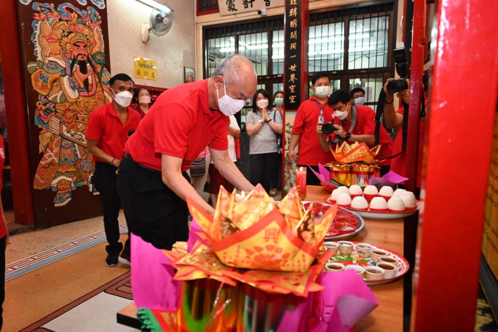 วานนี้ (วันอังคารที่ 8 กุมภาพันธ์ 2565 เวลา 23.00 น.) มูลนิธิป่อเต็กตึ๊ง นำโดย นายสัก กอแสงเรือง รองประธานกรรมการ พร้อมด้วยคณะกรรมการ และผู้บริหารมูลนิธิฯ ร่วมในพิธีเวียนธูปศักดิ์สิทธิ์ [ภายในศาลเจ้าไต้ฮงกง] เพื่อตั้งจิตอธิษฐานเทพยดาฟ้าดิน (เจ้าแห่งสวรรค์) และหลวงปู่ไต้ฮง ช่วยดลบันดาลให้ศิษยานุศิษย์และสาธุชนประสบโชคดีตลอดปีใหม่ พร้อมกับสรรเสริญและขอพรจากเทพเจ้า ให้ปวงชนอยู่เย็นเป็นสุข ปราศจากโรคภัย เฮงๆ ตลอดปีขาล ณ ศาลเจ้าไต้ฮงกง มูลนิธิป่อเต็กตึ๊ง พลับพลาไชย