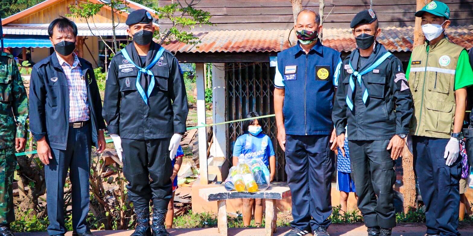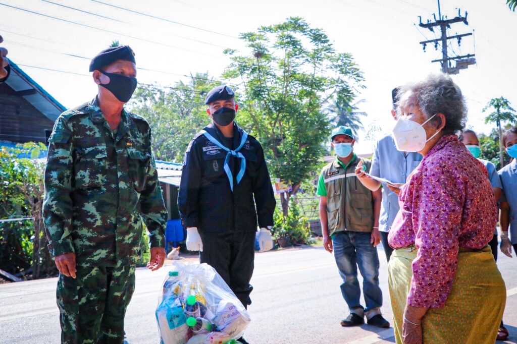 กองกำลังสุรศักดิ์มนตรี โดย พันเอก อุทัย นิลเนตร ผู้บังคับการกรมทหารพรานที่ 21/ผู้บังคับหน่วยเฉพาะกิจกรมทหารพรานที่ 21 พร้อมด้วย ผู้บังคับกองร้อยทหารพรานที่ 2101 หน่วยเฉพาะกิจกรมทหารพรานที่ 21 ชุดดคลื่อนที่เร็ว กองบังคับการควบที่ 3 กองกำลังสุรศักดิ์มนตรี ผู้นำชุมชน อาสาสมัครสาธารณสุขประจำหมู่บ้าน (อสม.) อาสาสมัครกิจการพลเรือน (อส.กร.) ในพื้นที่นำเครื่องอุปโภค – บริโภค ไปมอบให้กับประชาชนในพื้นที่ บ.นาข่า ต.ปากหมัน อ.ด่านซ้าย จ.เลย จำนวน 20 ครอบครัว ที่ได้รับผลกระทบจากการแพร่ระบาดของโรคไวรัสโคโรนา 2019 (COVID – 19) เนื่องจากพบประชาชนในพื้นที่ติดเชื้อ จำนวน 32 ราย เข้ารับการรักษา ณ รพ.สนามด่านซ้าย จำนวน 12 ราย กักตัวดูอาการที่บ้าน จำนวน 20 ราย ในการดำเนินกิจกรรมยังคงอยู่ภายใต้มาตรการป้องกันโควิด-19 อย่างเคร่งครัด
