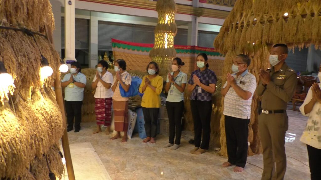 ที่วัดอรัญญาวาส หมู่ที่1 ต.วังโป่ง อ.วังโป่ง จ.เพชรบูรณ์ พระสงฆ์ ผู้เฒ่า ผู้แก่ ชาวบ้านในพื้นที่ตำบลวังโป่ง ได้ร่วมกันจัดพิธีบุญข้าวเปลือกบายศรีสู่ขวัญข้าว สืบสานตำนานพระแม่โพสพ ตามประเพณีความเชื่อแต่โบราณ โดยที่ชาวบ้านที่มาร่วมงาน ต่างนำข้าวเปลือกมาจากบ้านของตนเองเอามากองรวมกันไว้ จนกลายเป็นข้าวเปลือกกองใหญ่แล้วก่อเป็นเจดีย์ ข้าวเปลือก มีขนาดความสูงเกือบ 10 เมตร รวมปริมาณกว่า 10 เกวียน โดยมี พระครูสัทธาราภิรัต รอง.เจ้าคณะอำเภอวังโป่ง เจ้าอาวาสวัดอรัญญาวาส เป็นประธานฝ่ายสงฆ์ และนายสมศักดิ์ เกี้ยวเกิด นายอำเภอวังโป่ง ประธานฝ่ายฆราวาส นางเยาวภา โตสงวน วัฒนธรรมจังหวัดเพชรบูรณ์ นายไพรัช พริ้งประยูร นายกเทศมนตรีตำบลวังโป่ง จุดเทียนปลายยอดบายศรี เพื่อประกอบพิธีทำการสู่ขวัญข้าวก่อเจดีย์ข้าวเปลือก มักจัดขึ้นในช่วงเดือนมกราคมถึงเดือนกุมภาพันธ์ ขึ้น 3 ค่ำ เดือน 3 ตามประเพณีบุญข้าวเปลือกบายศรีสู่ขวัญข้าว สืบสานตำนานพระแม่โพสพและในปีนี้ได้มีการพัฒนาต่อยอดสืบสานประเพณี โดยสภาวัฒนธรรมอำเภอวังโป่ง และสภาวัฒนธรรมตำบลวังโป่ง เทศบาลตำบลวังโป่ง ร่วมกับพี่น้องประชาชนชาวอำเภอวังโป่ง นำรวงข้าวมาประดับตกแต่งอย่างสวยงาม ซึ่งระหว่างการประกอบพิธี ชาวบ้านจะทำการถือรวงข้าวแล้วร่ายรำรอบเจดีย์ข้าวเปลือกและใช้มือลูบเจดีย์ข้าวเปลือกตลอดทั้ง3รอบ โดยเฉพาะในปีนี้มีความพิเศษกว่าทุกปี ซึ่งได้นินมต์พระนักเทศชื่อดัง จากจังหวัดอุตรดิตถ์ มาร่วมทำพิธีบายศรีสู่ขวัญ อีกด้วย