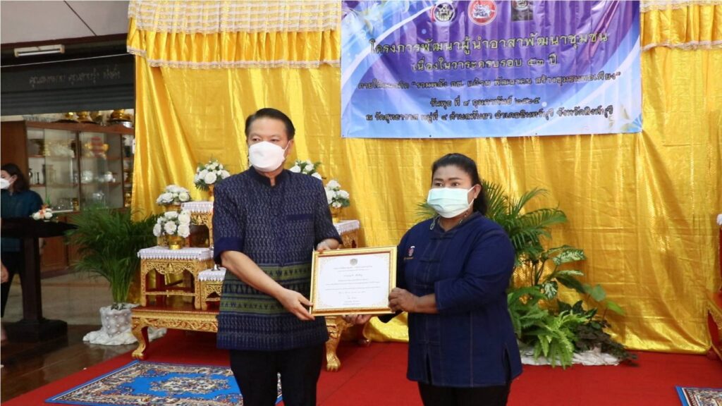 วันที่ 9 กุมภาพันธ์ 2565 เวลา 09.00 น. นายสัมฤทธิ์ กองเงิน รองผู้ว่าราชการจังหวัดสิงห์บุรี เป็นประธานในการจัดกิจกรรมเนื่องในวาระครบรอบ 53 ปี โครงการพัฒนาผู้นำอาสาพัฒนาชุมชน ณ วัดสุทธาวาส หมู่ที่ 4 ตำบลทับยา อำเภออินทร์บุรี จังหวัดสิงห์บุรี โดยมีนายถวิล ยี่สุ้นแสง พัฒนาการจังหวัดสิงห์บุรี พร้อมด้วยผู้อำนวยการกลุ่มงานฯ พัฒนาการอำเภอ เจ้าหน้าที่พัฒนาชุมชนจังหวัดสิงห์บุรี นายกเทศบาลตำบลทับยา เจ้าหน้าที่สำนักงานเทศบาลตำบลทับยา และผู้นำ อาสาพัฒนาชุมชน เข้าร่วมกิจกรรมทอดผ้าป่าสมทบทุนฯ ผู้นำ อช. จังหวัดสิงห์บุรี การแสดงพลังอาสาพัฒนาชุมชน ร้องเพลงสรรเสริญพระบารมี กล่าวคำปฏิญาณตน อ่านสารรัฐมนตรีว่าการกระทรวงมหาดไทย มอบในประกาศเกียรติคุณ ผู้นำ อช. ที่มีผลงานดีเด่น ประจำปี 2565 เยี่ยมชมนิทรรศการแสดงผลงานของ อช. / ผู้นำ อช. ดีเด่น ปลูกผักสวนครัวเพื่อสร้างความมั่นคงทางอาหาร ปลูกต้นไม้ กิจกรรมบำเพ็ญสาธารณประโยชน์ ทำความสะอาดบริเวณวัดเยี่ยมชมโบราณสถาน และเยี่ยมชมสินค้า OTOP