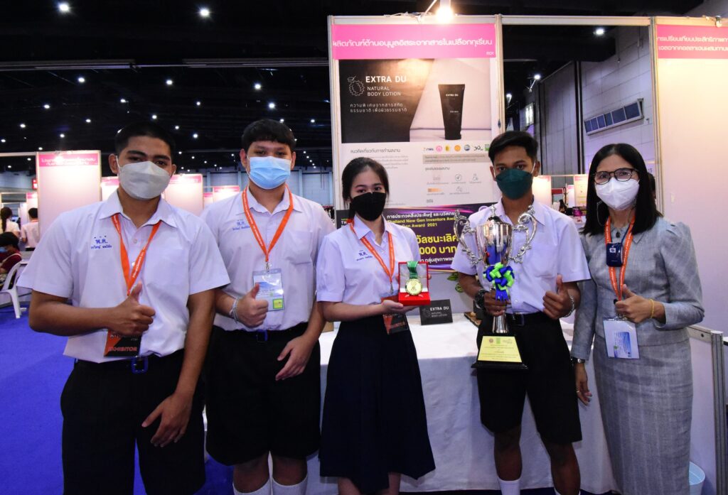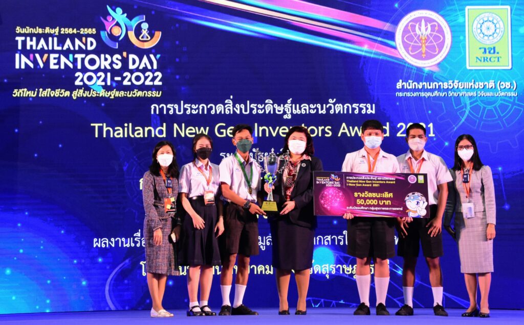 เมื่อวันที่ 6 กุมภาพันธ์ 2565 ที่ผ่านมา ดร.วิภารัตน์ ดีอ่อง ผู้อำนวยการสำนักงานการวิจัยแห่งชาติ เป็นประธานมอบรางวัลสิ่งประดิษฐ์ระดับเยาวชน โครงการ Thailand New Gen Inventor’s Award : I-New Gen Award 2021 ระดับมัธยมศึกษา รางวัลชนะเลิศ ด้านสุขภาพและการแพทย์ ให้กับ “ผลิตภัณฑ์ต้านอนุมูลอิสระจากสารในเปลือกทุเรียน” จากโรงเรียนพุนพินพิทยาคม จังหวัดสุราษฎร์ธานี จัดงานโดย สำนักงานการวิจัยแห่งชาติ (วช.) กระทรวงการอุดมศึกษา วิทยาศาสตร์ วิจัยและนวัตกรรม (อว.) ณ ศูนย์นิทรรศการและการประชุมไบเทค บางนา กรุงเทพมหานคร