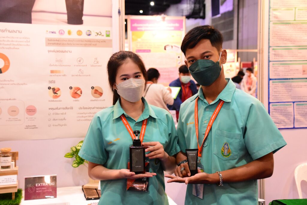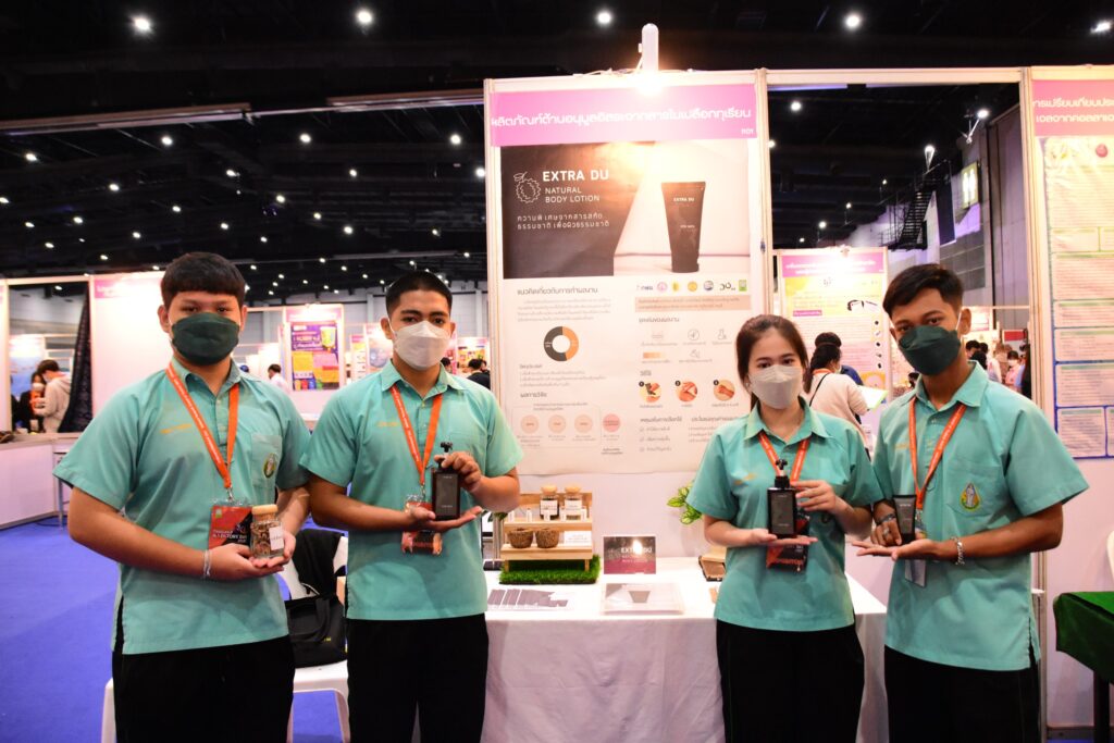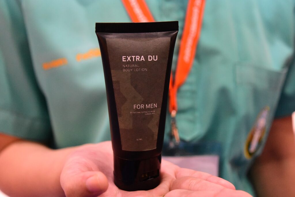 นายวิศรุต เอียดแก้ว หัวหน้าทีมนักประดิษฐ์ กล่าวว่า “Extra DU” โลชั่นบำรุงผิวกายสำหรับผู้ชาย ที่จัดทำโดยการใช้สารฟินอลิกเป็นส่วนประกอบที่สำคัญ โดยลักษณะเนื้อโลชั่นเนื้อเนียนละเอียดค่อนข้างหนืด สีเนื้อโลชั่นมีสีครีม-ขาว กลิ่นโลชั่นหอมและมีกลิ่นเฉพาะตัว เนื้อโลชั่นจะไม่แยกชั้น ทำให้โลชั่นทาง่ายซึมเข้าผิวได้ดี ไม่เหนียวเหนาะหนะ อีกทั้งยังเป็นสารสกัดจากธรรมชาติ ทำให้เหมาะกับทุกสภาพผิวของผู้ชาย และผู้ใช้มีสุขภาพผิวดีแบบธรรมชาติ ซึ่งผลงานดังกล่าวได้ช่วยลดปัญหาขยะที่เกิดจากเปลือกทุเรียน ช่วยเพิ่มมูลค่าให้กับเปลือกทุเรียนและสร้างรายได้ให้ชุมชนอีกด้วย