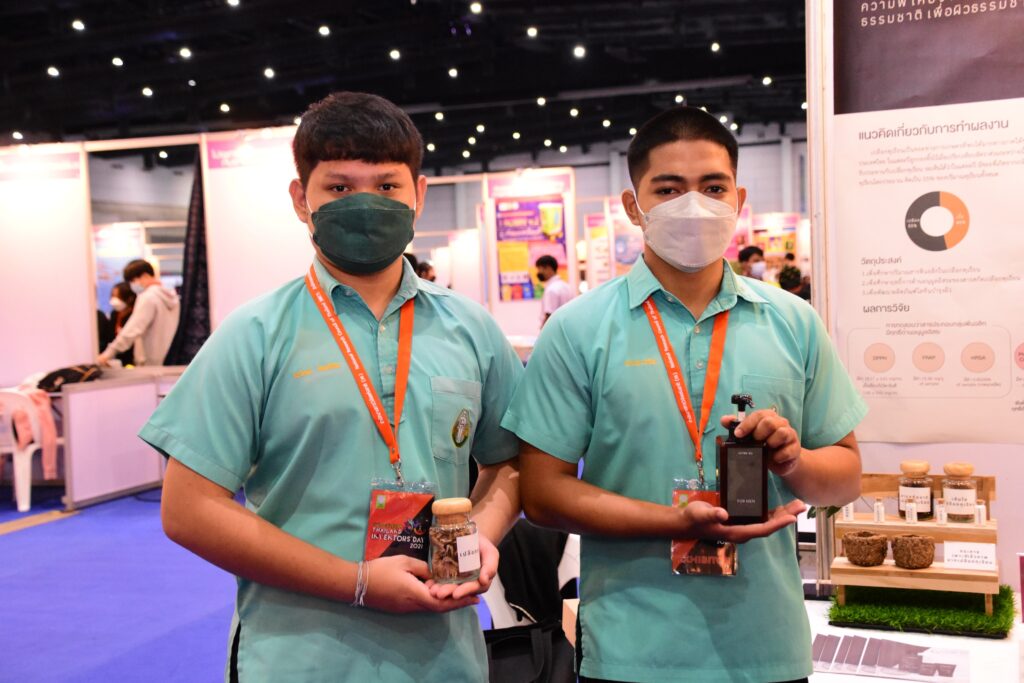 สำหรับ “ผลิตภัณฑ์ต้านอนุมูลอิสระจากสารในเปลือกทุเรียน” สุดต๊าชของน้องๆ จากโรงเรียนพุนพินพิทยาคม จังหวัดสุราษฎร์ธานี คิดค้นโดย นายวิศรุต เอียดแก้ว นายวรวิชญ์ พลวิชัย นายจิรวัฒน์ ทิพย์พินิจ นายชินกฤต กาญจนกำเนิด และนางสาวพวงพกา ชาตรีทัพ นักเรียนระดับชั้นมัธยมศึกษาปีที่ 6 โดยมี คุณครูจิราภรณ์ สมฤดี และคุณครูจารุวรรณ รักษ์รอด เป็นคุณครูที่ปรึกษา โดยผลิตภัณฑ์ดังกล่าว ได้ส่งเข้าประกวดในโครงการ Thailand New Gen Inventor’s Award : I-New Gen Award 2021 และสามารถคว้ารางวัลชนะเลิศ ระดับมัธยมศึกษา ด้านสุขภาพและการแพทย์มาได้