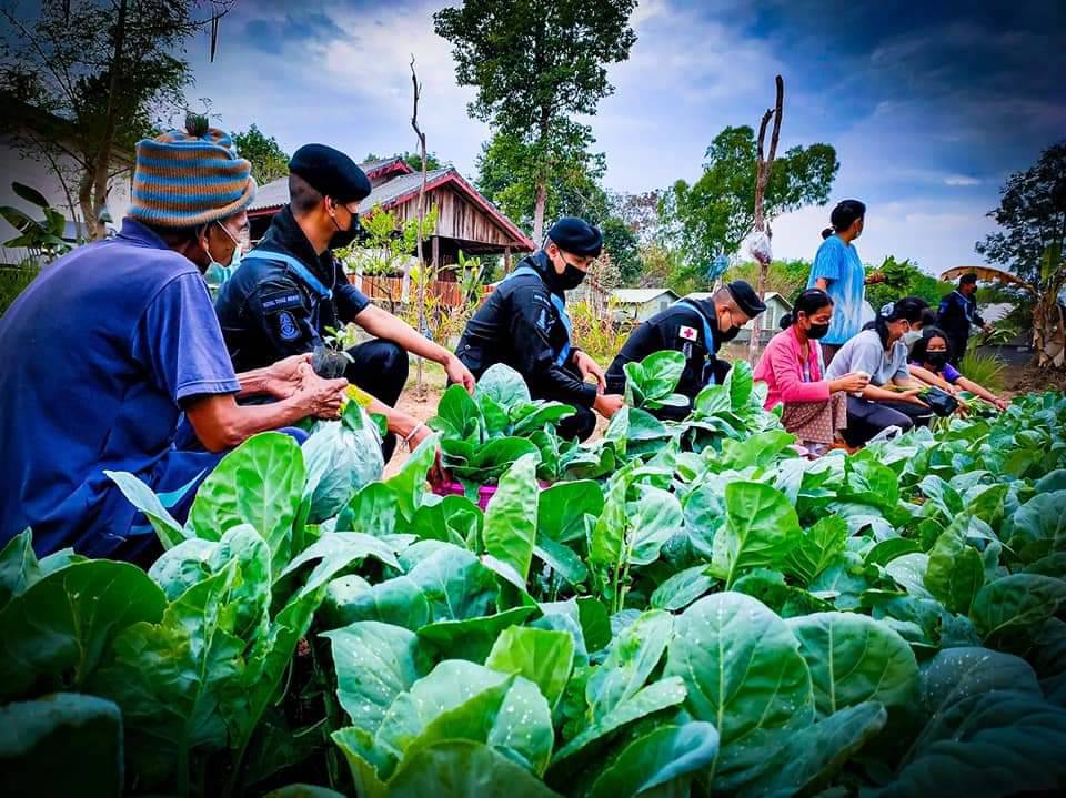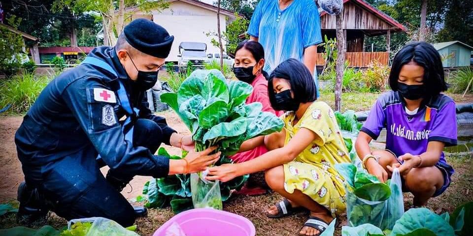 วันที่ 12 กุมภาพันธ์ 2565 กองกำลังสุรศักดิ์มนตรี โดย กองร้อยทหารพรานที่ 2108 หน่วยเฉพาะกิจกรมทหารพรานที่ 21 ได้ดำเนินการปลูกผักปลอดสารพิษไว้บริโภคเอง เพื่อลดค่าใช้จ่าย โดยใช้พื้นที่ว่างภายในฐานปฏิบัติการของหน่วย ให้กำลังพลร่วมกันปลูกผักดูแลสวนเกษตรทฤษฎีใหม่ในห่วงที่ไม่ได้ปฏิบัติภารกิจหลัก โดยมีชาวบ้านบ้าน บ.ปากห้วยม่วง ม.2 ต.นาเข อ.บ้านแพง จ.นครพนม เดินผ่านบริเวณสวนเกษตรที่มีผักปลอดสารพิษที่ผักเจริญเติบโตได้เป็นอย่างดี น่ารับประทาน จึงอยากได้ไปรับประทานภายในครอบครัว ทางด้าน ร.ต.วันชาติ. เหมือนปืน ผบ.ร้อย.ทพ.2108 ฉก.ทพ.21 จึงให้กำลังพลส่งมอบน้ำใจ “มีแล้วแบ่งปัน” ร่วมกันเก็บผักร่วมกับชาวบ้าน มอบให้กับประชาชนผู้ยากไร้,คนแก่ชราฐานะยากจน ในพื้นที่ เพื่อเป็นการช่วยเหลือประชาชนเนื่องจากราคาสินค้าเกษตรโดยเฉพาะผักที่มีราคาสูง พร้อมทั้งให้ประชาชนได้รับประทานผักปลอดสารพิษ และเป็นการลดภาระค่าใช้จ่ายภายในครอบครัว ที่ได้รับผลกระทบจากสถานการณ์แพร่ระบาดของโรคติดเชื้อไวรัสโคโรน่า 2019 (Covid -19) ทำให้ประชาชนรวมถึงเด็กๆในพื้นที่ต่างรู้สึกดีใจเป็นอย่างมาก และได้กล่าวขอบคุณที่ทางหน่วยเฉพาะกิจกรมทหารพรานที่ 21 ที่ให้ความช่วยเหลือในยามที่ประชาชนที่เดือดร้อน ได้เห็นการแบ่งปันด้วยรอยยิ้มเกิดขึ้นระหว่างทหารพรานกับพี่น้องประชาชนผู้ยากไร้ คนแก่ชรา สร้างสังคมแห่งการให้และแบ่งปันให้เด็กๆได้เห็น เป็นแบบอย่างต่อไป ในพื้นที่ บ.ปากห้วยม่วง ม.2 ต.นาเข อ.บ้านแพง จ.นครพนม โดยหน่วยได้ดำเนินการตามมาตรการในการป้องกันการแพร่ระบาดของโรคติดเชื้อไวรัสโคโรน่า 2019 (Covid -19) อย่างเคร่งครัด