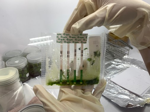 โดยทีมวิจัยได้นำตัวอย่างพันธุ์เบญจมาศมาวิเคราะห์หาสาเหตุตัวก่อโรคในภาคสนาม ที่แปลงปลูกและแม่พันธุ์ ก่อนตรวจสอบในห้องปฏิบัติการ เพื่อให้ได้พันธุ์เบญจมาศที่ปราศจากเชื้อรา แบคทีเรีย และเชื้อไวรัส จากนั้นจึงทำการเพาะเลี้ยงกลีบดอกเบญจมาศในหลอดทดลอง จนกลีบดอกพัฒนาเป็นต้นอ่อน จึงทำการตรวจโรคด้วยเทคนิค RT-PCR เพื่อตั้งแม่พันธุ์ที่ปลอดโรค และขยายพันธุ์เพิ่มจำนวนในระบบไบโอรีแอคเตอร์จมชั่วคราว พร้อมทั้ง ย้ายต้นพันธุ์ และทำการอนุบาลในระบบ Clean Nursery เกิดเป็นต้นพันธุ์ที่มีคุณภาพ สมบูรณ์แข็งแรง และปราศจากโรค ก่อนมอบให้กับเกษตรกรกว่า 60 ราย ในพื้นที่ 6 จังหวัด ได้แก่ จังหวัดเชียงราย,เชียงใหม่,เลย,อุดรธานี,อุบลราชธานี และนครราชสีมา เพื่อทำการคัดเลือกและประเมินพันธุ์ที่เหมาะสมกับตลาดและผู้บริโภค