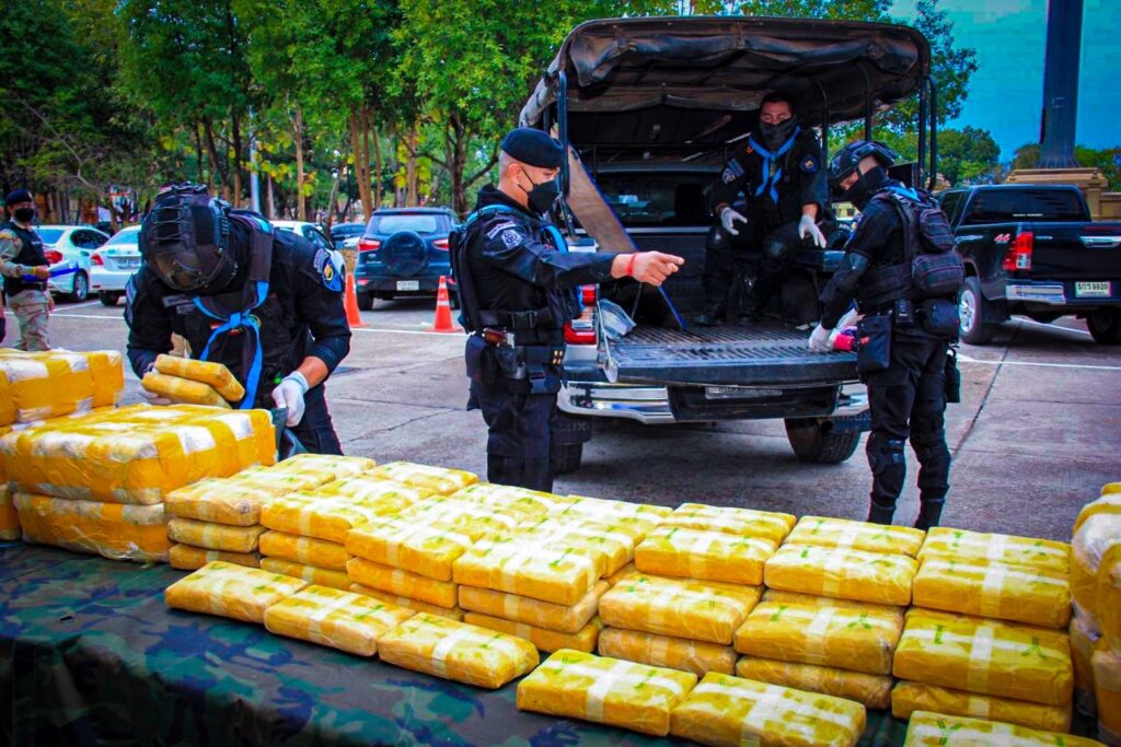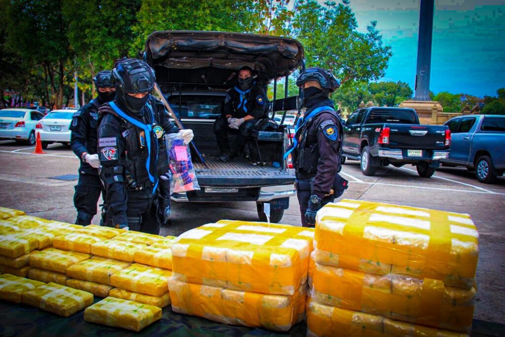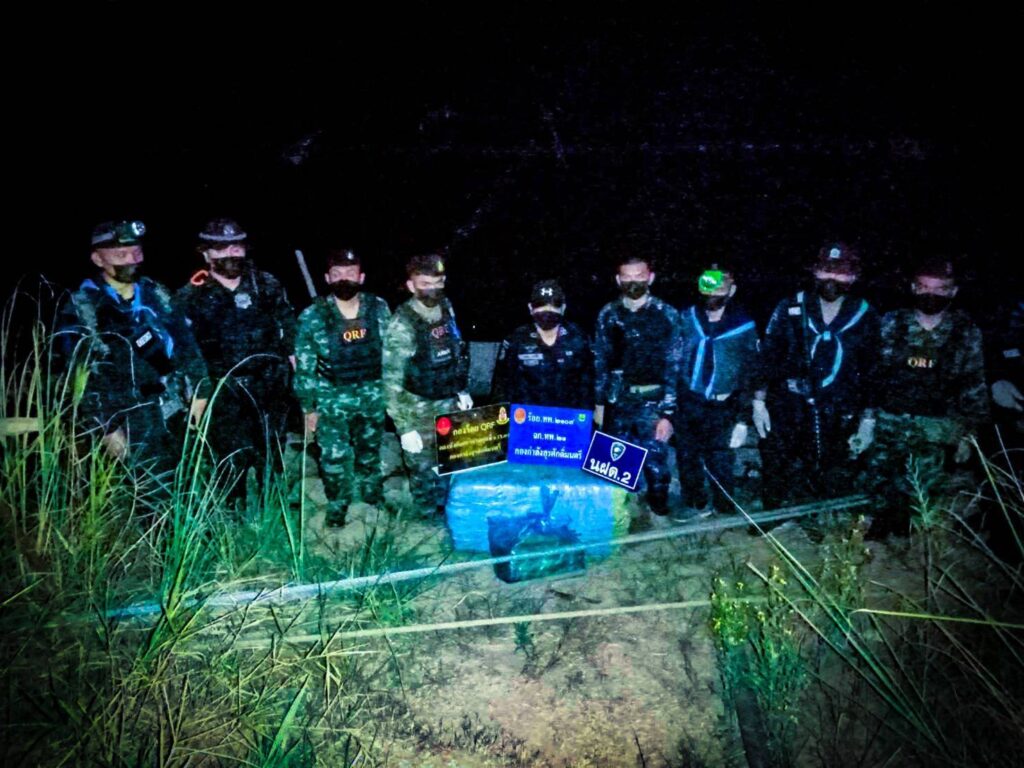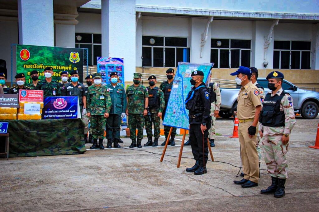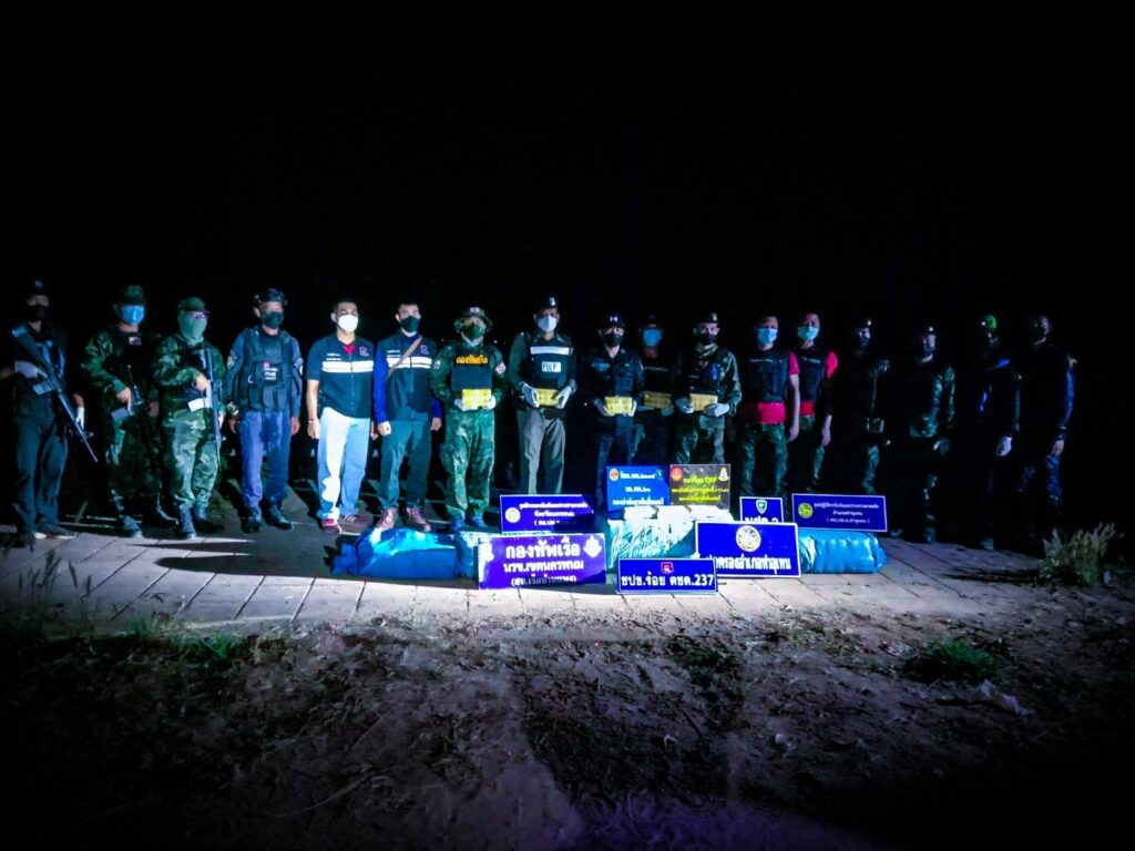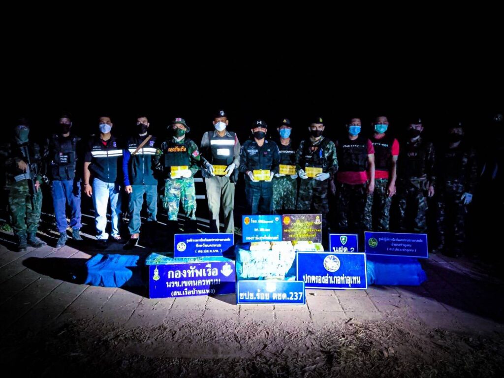 ในวันที่ 13 กุมภาพันธ์ 2565 กกล.สุรศักดิ์มนตรี โดย ฉก.ทพ.21 ภายใต้การอำนวยการของ พล.ต ณรงค์ สวนแก้ว ผบ.กกล.สุรศักดิ์มนตรี และ พ.อ. อุทัย นิลเนตร ผบ.ฉก.ทพ.21 จากการบูรณาการด้านการข่าวในพื้นที่ อ.ท่าอุเทน จ.นครพนม ได้รับแจ้งจากแหล่งข่าวในพื้นที่ว่าจะมีการลักลอบขนยาเสพติดจากฝั่ง สปป.ลาว เข้ามายังประเทศไทยตามแนวชายแดนแม่น้ำโขง จึงได้สั่งการให้กองร้อยทหารพรานที่ 2109 หน่วยเฉพาะกิจกรมทหารพรานที่ 21 นำทีมโดย ร.อ.ธนากร นาเหล็ก ผบ.ร้อย.ทพ.2109 ฉก.ทพ.21 จึงจัดกำลังพล ร่วมกับ ชฝด.3 นฝด.2 และ มว.QRF ที่ 2 ร้อย.QRF กกล.สุรศักดิ์มนตรี, ร้อย.ตชด.237, นรข.เขตนครพนม สน.เรือบ้านแพง, ฝ่ายปกครองอำเภอท่าอุเทน และ สภ.ท่าอุเทน ทำการ ลว.เฝ้าตรวจ จุดเสี่ยง/จุดล่อแหลม เพื่อป้องกันสกัดกั้นการลักลอบขนย้ายยาเสพติด สิ่งผิดกฎหมาย และการกระทำผิดเงื่อนไขตามแนวชายแดน ครั้นเมื่อเวลา 2000 น. เจ้าหน้าที่ได้ลาดตระเวนมาถึง บริเวณ ริมแม่น้ำโขง พื้นที่ บ.เหล่าสวนกล้วย ม.4 ต.หนองเทา อ.ท่าอุเทน จ.นครพนม ตรวจพบบุคคลชายต้องสงสัยลักษณะท่าทางมีพิรุธ จำนวน 5 คน วิ่งลงไปในแม่น้ำโขง แล้วนั่งเรือกีบติดเครื่องยนต์แล่นออกจากบริเวณดังกล่าวและตัดข้ามไปยังฝั่ง สปป.ลาว อย่างรวดเร็ว เจ้าหน้าที่จึงทำการตรวจสอบบริเวณโดยรอบ พบยาบ้า จำนวน 3 จุด จุดที่ 1 พบเป็นยาบ้า จำนวน 1 กระสอบ และอีก 1 ถุงเล็ก จุดที่ 2 พบยาบ้า จำนวน 1 กระสอบ จุดที่ 3 พบยาบ้า จำนวน 2 กระสอบ เจ้าหน้าที่จึงทำการตรวจยึดยาเสพติดดังกล่าว ของกลางทั้งหมด นำมายัง บก.ร้อย.ทพ.2109 เพื่อตรวจสอบและตรวจนับรายละเอียด จึงได้แจ้งประสานหน่วยงานในพื้นที่ร่วมตรวจยึดของกลางทั้งหมด ส่ง พนักงานสอบสวน สภ.ท่าอุเทน จ.นครพนม เพื่อดำเนินคดีตามกฎหมายต่อไป