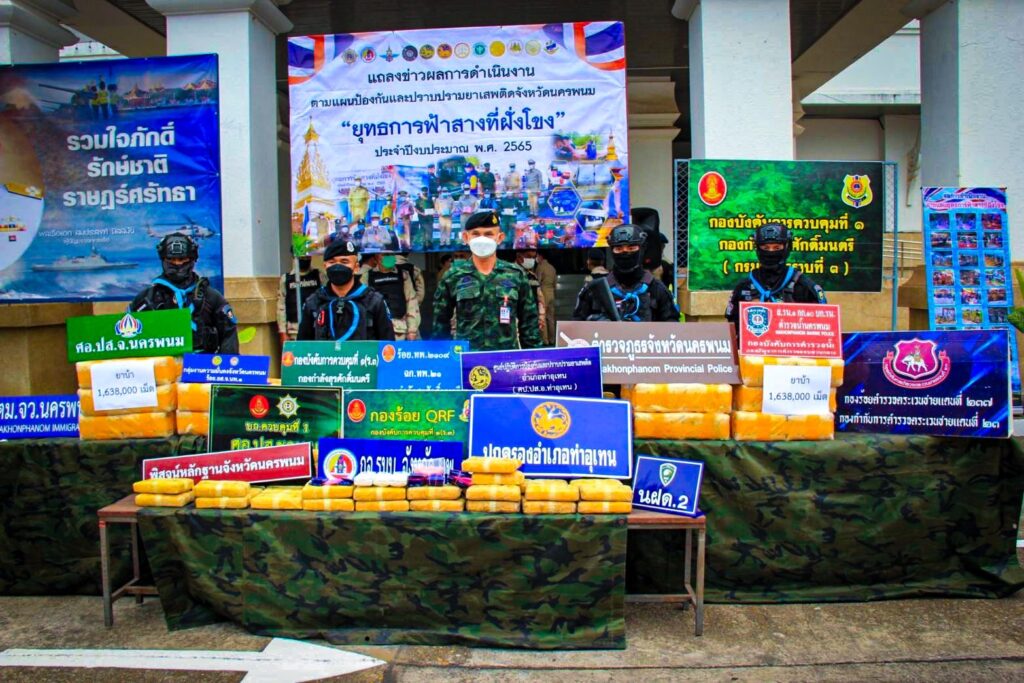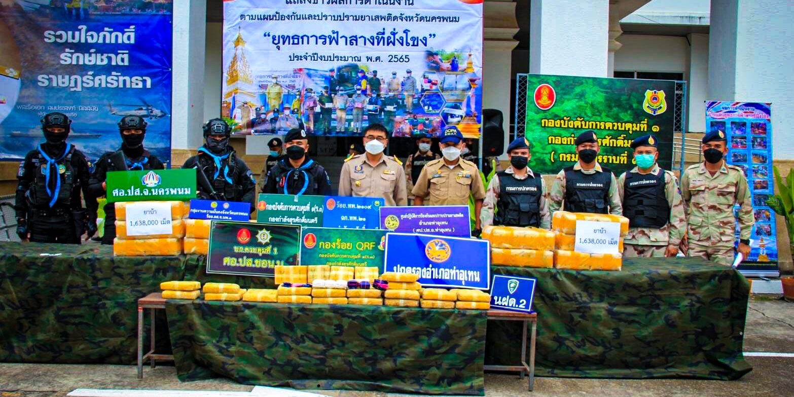 ทั้งนี้ จังหวัดนครพนมได้จัดทำแผนปฏิบัติการป้องกันและปราบปรามยาเสพติด ภายใต้ “ยุทธการฟ้าสางที่ฝั่งโขง” เพื่อเป็นกรอบแนวทางให้กับทุกหน่วยงานทั้งฝ่ายปกครอง ตำรวจ ทหาร ตลอดจนภาคีเครือข่ายที่เกี่ยวข้องในพื้นที่ บูรณาการร่วมกันขับเคลื่อนการแก้ไขปัญหายาเสพติดให้เกิดผลเป็นรูปธรรม อันจะเป็นการสร้างความปลอดภัยในชีวิตและทรัพย์สินของพี่น้องประชาชน สนองตอบต่อนโยบายเร่งด่วนของรัฐบาล ซึ่งทางจังหวัดฯได้มีการดำเนินการตามแผนปฏิบัติการดังกล่าวครอบคลุมทั้งมิติด้านป้องกัน ปราบปราม บำบัดรักษา และการบริหารจัดการ ซึ่งจากการดำเนินการในห้วงวันที่ 1 ตุลาคม 2564-ปัจจุบัน ด้านปราบปรามได้มีการปิดล้อม ตรวตค้น ยึด จับกุม ทำลายเครือข่ายยาเสพติดทั้งในและนอกพื้นที่ จำนวน 1,350 ครั้ง ผู้ต้องหา 1,333 คน ของกลางยาเสพติด 1.ยาบ้า 3,103,250 เม็ด ไอซ์ 221 กิโลกรัม กัญชาแห้งอัดแท่ง 10,515 แท่ง/กิโลกรัม ยึดทรัพย์แล้ว 11 ราย ฯลฯ.