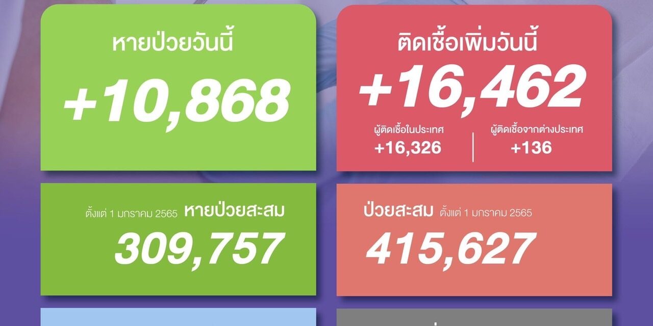หายป่วยสะสม 309,757 ราย (ตั้งแต่ 1 มกราคม 2565)