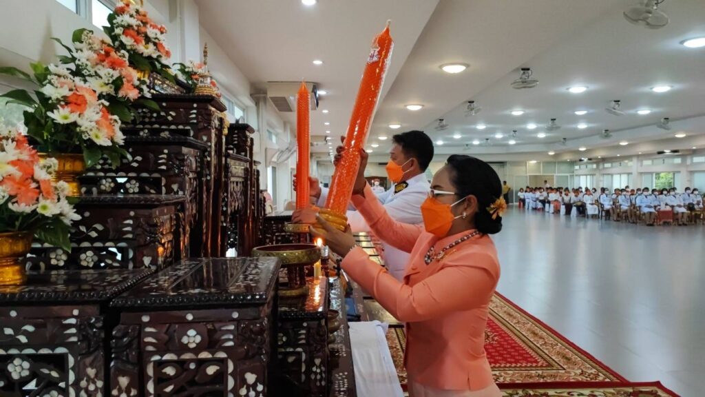 โดยมี นายสมชาย ลีหล้าน้อย รองผู้ว่าราชการจังหวัดสิงห์บุรี เป็นประธานในพิธีฯ ร่วมด้วยอาจารย์คนึงนิตย์ ธนาภพธัญธนา เจ้าภาพผู้เชิญโคมเทียนแก้วพระราชทานฯ ในโอกาสเดียวกันนี้ด้วย
