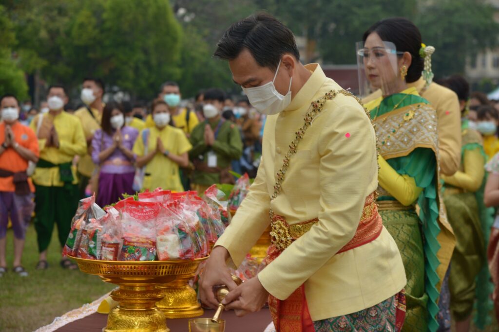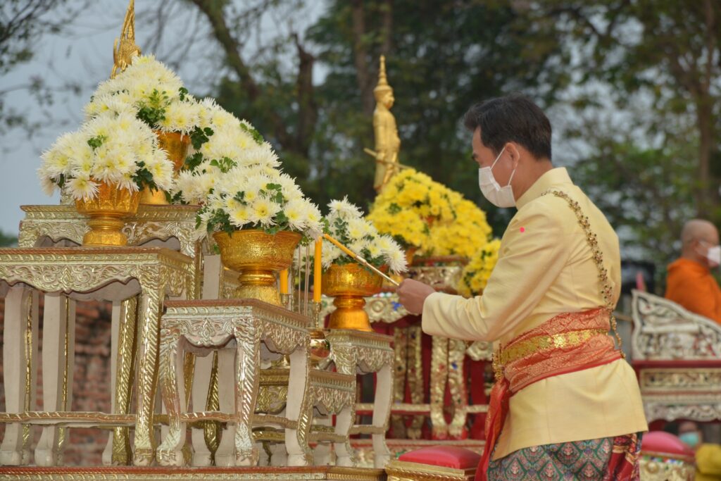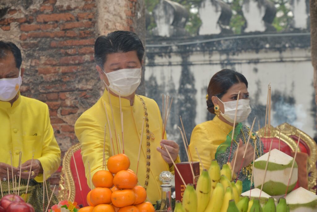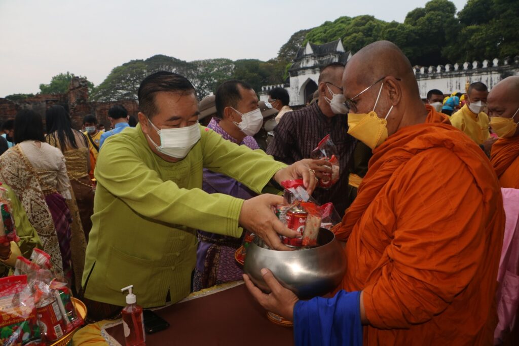 เมื่อเวลา06.00 นายนิวัฒน์ รุ่งสาคร ผู้ว่าราชการจังหวัดลพบุรี เป็นประธานพิธีทำบุญตักบาตร เพื่อถวายเป็นพระราชกุศลแด่องค์สมเด็จพระนารายณ์มหาราช และ พิธีบวงสรวงสักการะสมเด็จพระนารายณ์มหาราช ณ พระที่นั่งดุสิตสวรรค์ธัญญมหาปราสาท ซึ่ง นายจำเริญ สละชีพ นายกเทศมนตรีเมืองลพบุรี มอบหมายให้ นายสมชัย อินปุระ รองนายกเทศมนตรีเมืองลพบุรี นายอนุสรณ์ อัศวสงคราม รองนายกเทศมนตรีเมืองลพบุรี นายสันธนะ บัวชาติ รองนายกเทศมนตรีเมืองลพบุรี พร้อมด้วย หัวหน้าส่วนราชการเทศบาลเมืองลพบุรี และพนักงานเทศบาลเมืองลพบุรี ร่วมในพิธีในการจัดงานแผ่นดินสมเด็จพระนารายณ์มหาราช ประจำปี ๒๕๖๕ ระหว่างวันที่ ๑๑-๒๐ กุมภาพันธ์ ๒๕๖๕