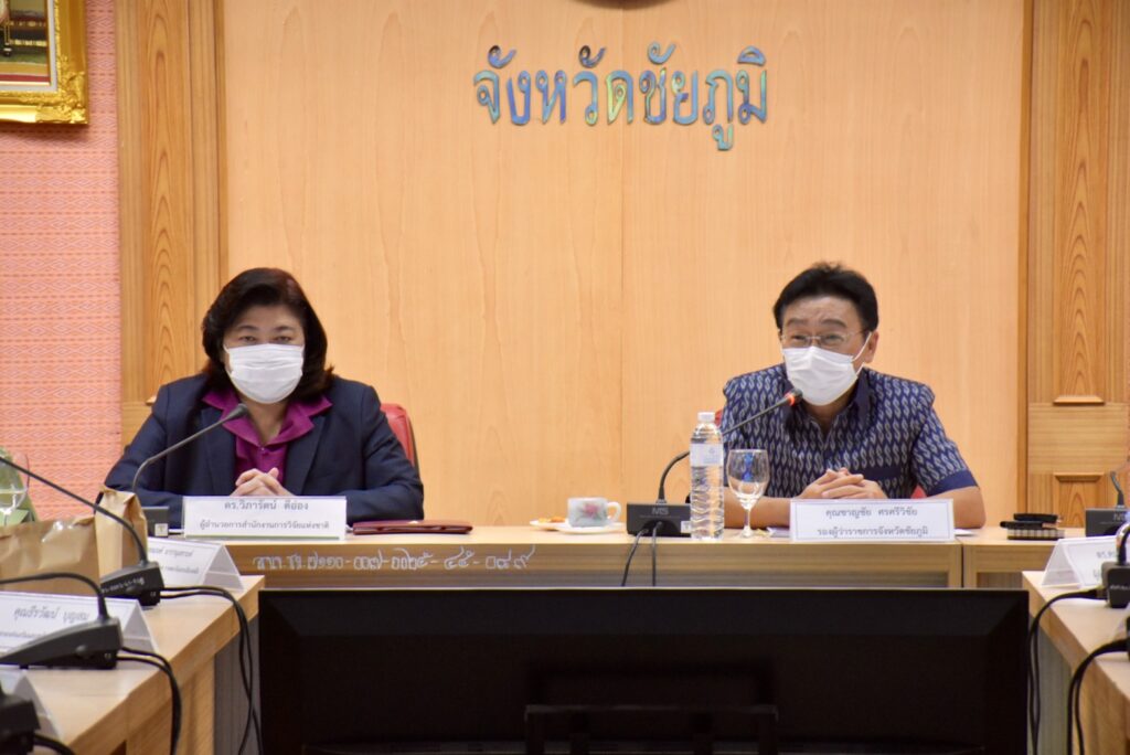 เมื่อวันที่ 15 กุมภาพันธ์ 2565 ดร.วิภารัตน์ ดีอ่อง ผู้อำนวยการสำนักงานการวิจัยแห่งชาติ (วช.) พร้อมด้วย นายชาญชัย ศรศรีวิชัย รองผู้ว่าราชการจังหวัดชัยภูมิ และเครือข่ายวิจัยภูมิภาค : ภาคตะวันออกเฉียงเหนือ มหาวิทยาลัยขอนแก่น และมหาวิทยาลัยราชภัฏชัยภูมิ ร่วมประชุมเตรียมการจัดตั้งศูนย์วิจัยชุมชน “อารยะศิลป์ ชัยภูมิ”พิพิธภัณฑ์ผ้าโบราณ (เฮือนคำมุ) ณ ศาลากลางจังหวัดชัยภูมิ เพื่อส่งเสริมและสนับสนุน เป็นศูนย์กลางการเรียนรู้ ด้านศิลปวัฒนธรรมล้านช้างในภูมิภาคตะวันออกเฉียงเหนือของประเทศไทย