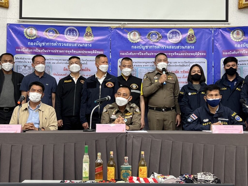 วันที่ 18 ก.พ.65 เวลา 11.00 น. ที่ สภ.เมืองนครนายก : พล.ต.ต.จรูญเกียรติ ปานแก้ว ผบก.ปปป. พร้อมด้วย พ.ต.อ.พิทักษ์ วาฤทธิ์ ผกก.2 บก.ปปป.,นายศรชัย ชูวิเชียร ผู้ช่วยเลขาธิการคณะกรรมการป้องกันและปราบปรามทุจริตแห่งชาติ (ป.ป.ช.) และตัวแทนเจ้าหน้าที่หน่วยงานต่างๆที่เกี่ยวข้อง ร่วมกันแถลงผลปฏิบัติการ “ล้างบาปปราบอลัชชี ทุจริตเงินทอนวัด” ซึ่งภาพรวมของการเข้าตรวจค้นในครั้งนี้เจ้าหน้าที่ได้ทำการตรวจยึดโฉนดที่ดิน จำนวน 3 แปลง มูลค่ารวม 21 ล้านบาท,เหล้า 3 ขวด,ถุงยางอนามัย 1 ชิ้น และ ปืนบีบีกัน 1 กระบอก