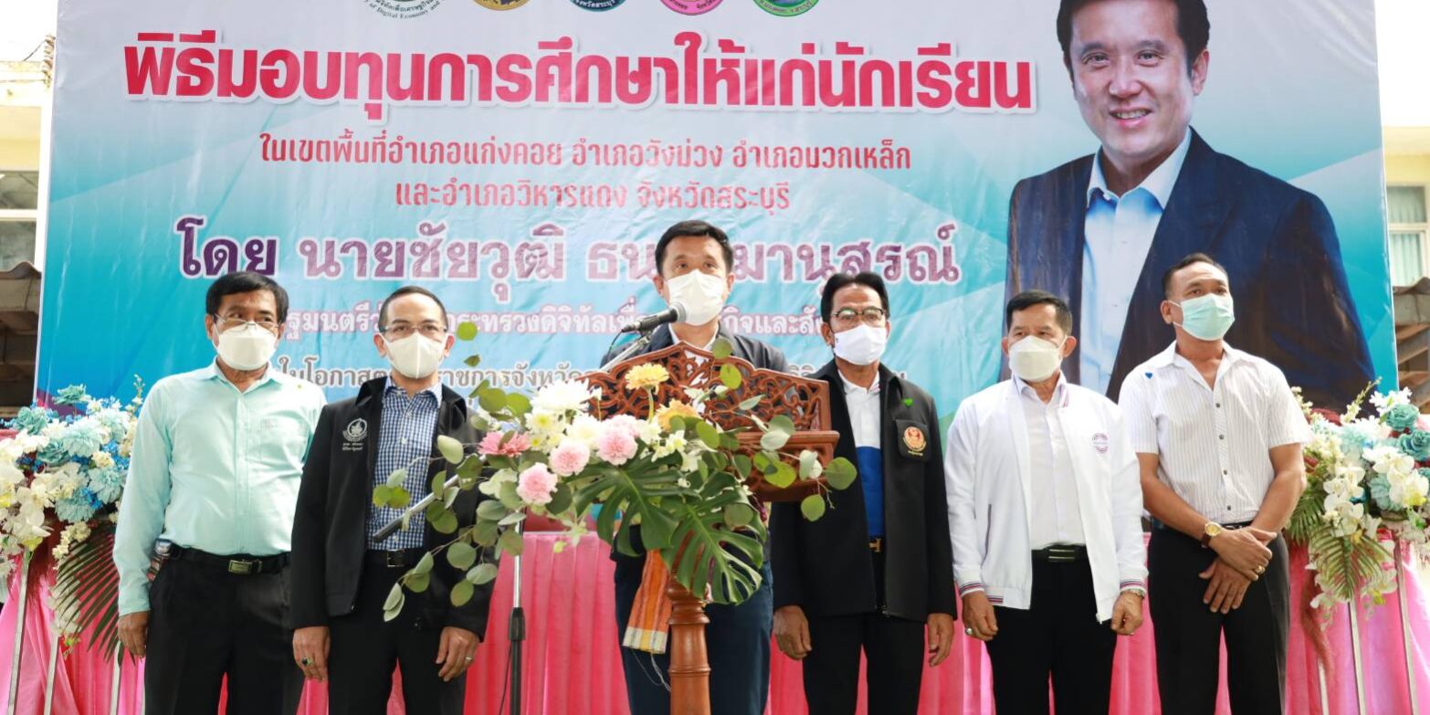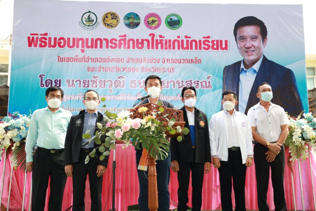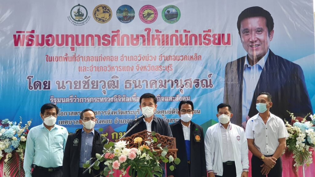 นายสมชาย วรกิจเจริญผล นายกเทศมนตรีเทศบาลเมืองแก่งคอย กล่าวรายงาน ผลการดำเนินงานที่ผ่านมาของศูนย์ดิจิทัลชุมชนเทศบาล วัตถุประสงค์ของการยกระดับศูนย์การเรียนรู้ CT จึงได้เปิดศูนย์ดิจิทัลชุมชนเทศบาลเมืองแก่งคอยไว้ให้นักเรียน นักศึกษาและประชาชนได้ใช้บริการ พร้อมมอบทุนการศึกษาให้นักเรียนยากจน 100 ทุน