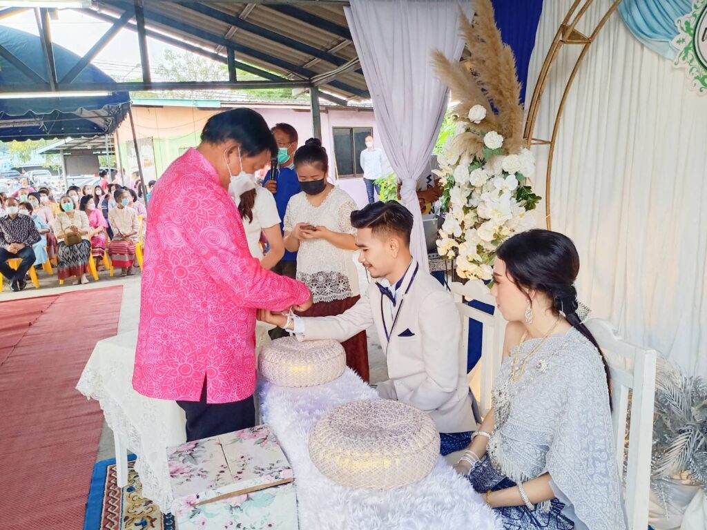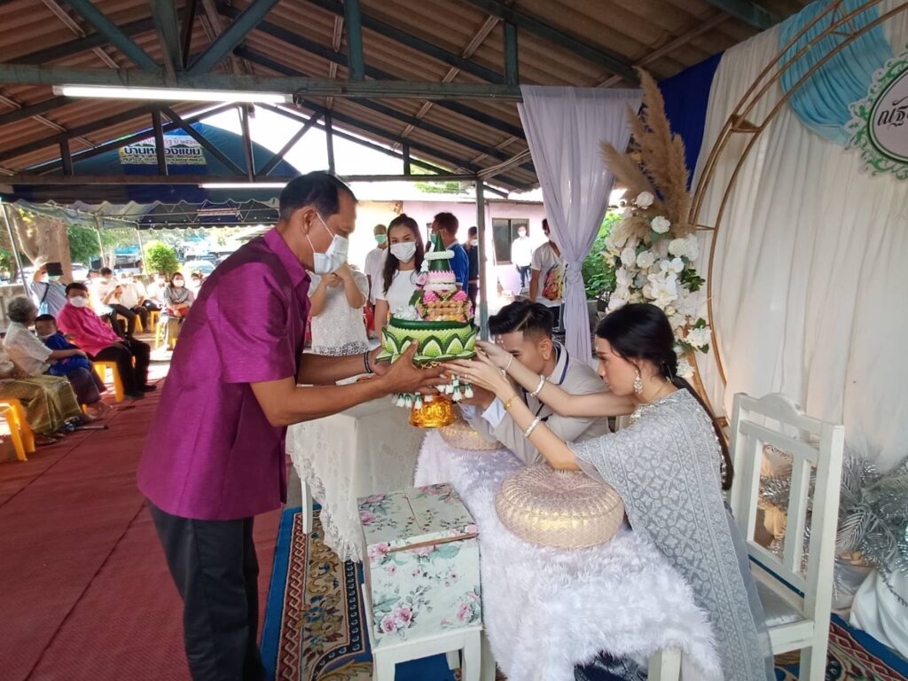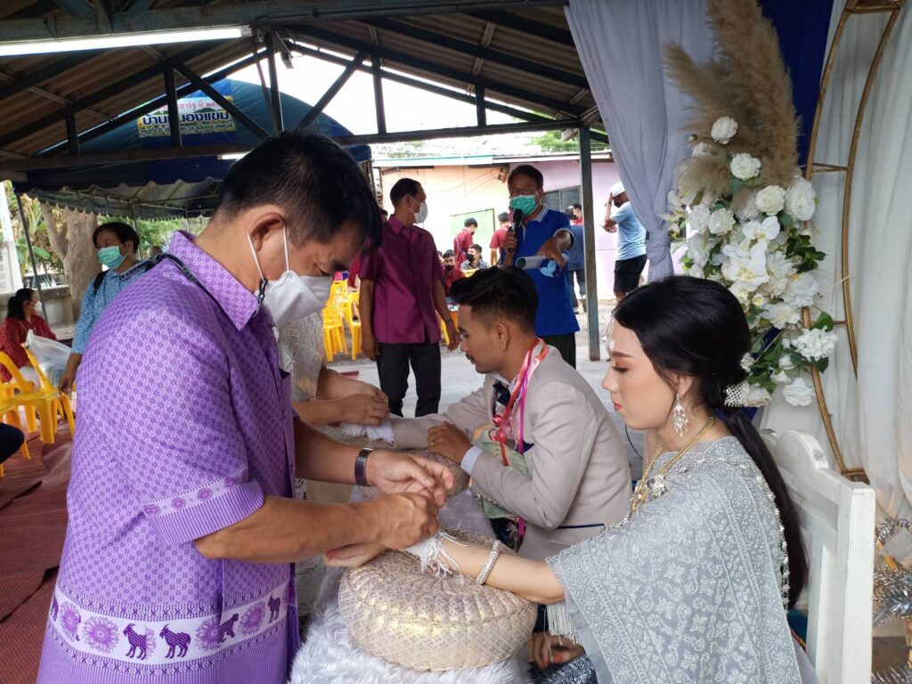 ทั้งนี้ ได้นำหน้ากากอนามัย มอบให้ผู้มีเกียรติ ทุกท่านที่ได้มาร่วมในงานพิธีมงคลสมรส เพื่อใช้สวมใส่ป้องกันการระบาดของโรคโควิด19 ตามมาตรการของกระทรวงสาธารณสุข