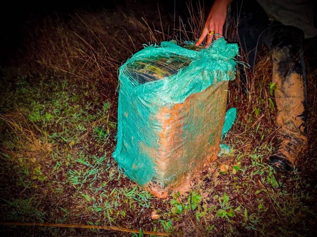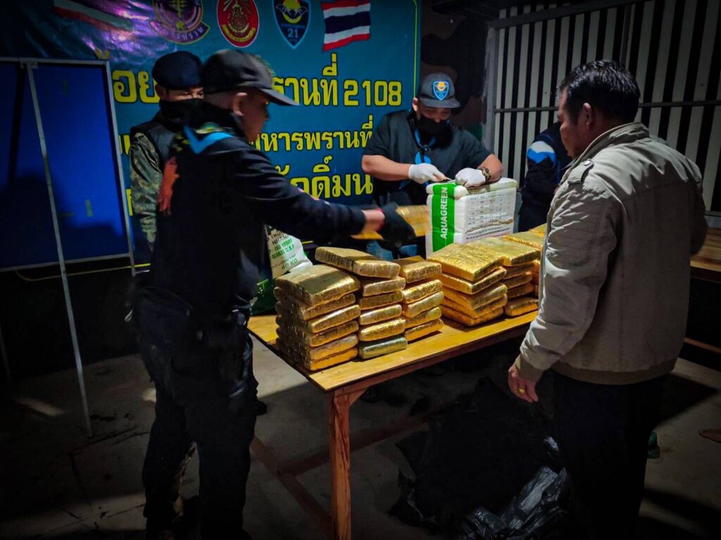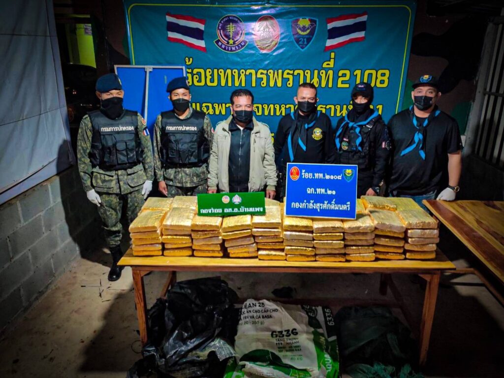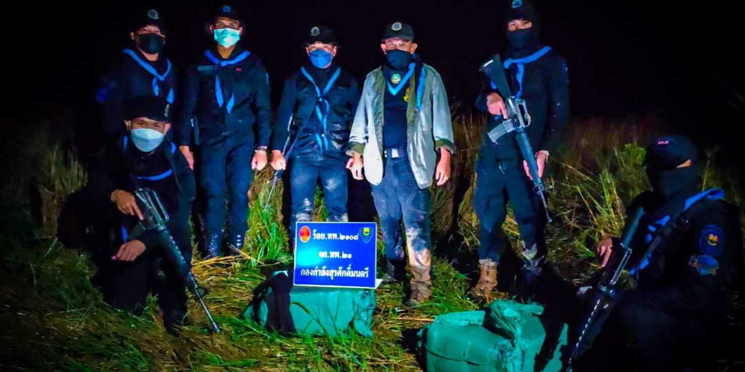 วันที่ 21 ก.พ.65 กองกำลังสุรศักดิ์มนตรี โดย ร้อยตรี วันชาติ เหมือนปืน ผู้บังคับกองร้อยทหารพรานที่ 2108 หน่วยเฉพาะกิจกรมทหารพรานที่ 21 เปิดเผยว่า เมื่อดึกคืนที่ผ่านมาไได้รับแจ้งจากแหล่งข่าวในพื้นที่ว่าจะมีการลักลอบขนย้ายยาเสพติดจากประเทศเพื่อนบ้านเข้ามาในพื้นที่รับผิดชอบของหน่วยบริเวณ บ.ม่วงชี ต.โพนทอง อ.บ้านแพง จ.นครพนม เพื่อลำเลียงส่งต่อไปยังพื้นที่ตอนใน จึงจัด ชุดปฏิบัติการเคลื่อนที่เร็วของหน่วย เข้าทำการซุ่มเฝ้าตรวจจุดเสี่ยง,จุดล่อแหลม พื้นที่สำคัญ ตามภาพข่าวที่ได้รับแจ้งจากแหล่งข่าว(ไม่ประสงค์ออกนาม) เพื่อป้องกันและสกัดกั้นขบวกการค้ายาเสพติดข้ามชาติ ครั้นเมื่อเวลาประมาณ 2120 น.ตรวจพบชายประมาณ 4 คน ไม่ทราบอายุและสัญชาติ เดินแบกสิ่งของมาตามป่า ตามทุ่งนา มุ่งหน้ามายังถนนหลวงหมายเลข 212 จึงแสดงตัวขอตรวจค้น เเต่กลุ่มชายดังกล่าวได้ทำการขัดขืนไม่ยอมให้ตรวจค้น โดยได้ทิ้งสิ่งของที่ลำเลียงมาและวิ่งหลบหนี กำลังพลของหน่วยจึงได้ทำการวิ่งไล่ติดตาม และยิงปืนขึ้นฟ้า เพื่อให้กลุ่มขบวนการค้ายาเสพติดข้ามชาติหยุดวิ่งในการหลบหนี แต่กลุ่มชายดังกล่าวไม่ยอมหยุดวิ่ง แล้วอาศัยความชำนาญในพื้นที่หลบหนีไปกับความมืด บริเวณทุ่งนา บ.ม่วงชี ม.4 ต.โพนทอง อ.บ้านแพง จ.นครพนม จึงทำการตรวจสอบพื้นที่โดยรอบพบถุงกระสอบต้องสงสัย จำนวน 4 กระสอบ เมื่อตรวจสอบเบื้องต้นภายในกระสอบ พบเป็นยาเสพติดประเภท 5 (กัญชา) ทั้ง 4 กระสอบ จำนวน 100 แท่ง/กก. จึงได้ทำการขนย้ายมาที่ บก.ร้อย.ทพ.2108 และประสานหน่วยงานความมั่นคงในพื้นที่ ร่วมบูรณาการตรวจยึดของกลางดังกล่าวพรัอมนำยาเสพติดทั้งหมดส่ง พนักงานสอบสวน สภ.บ้านแพง จ.นครพนม เพื่อดำเนินคดีตามกฎหมายต่อไป