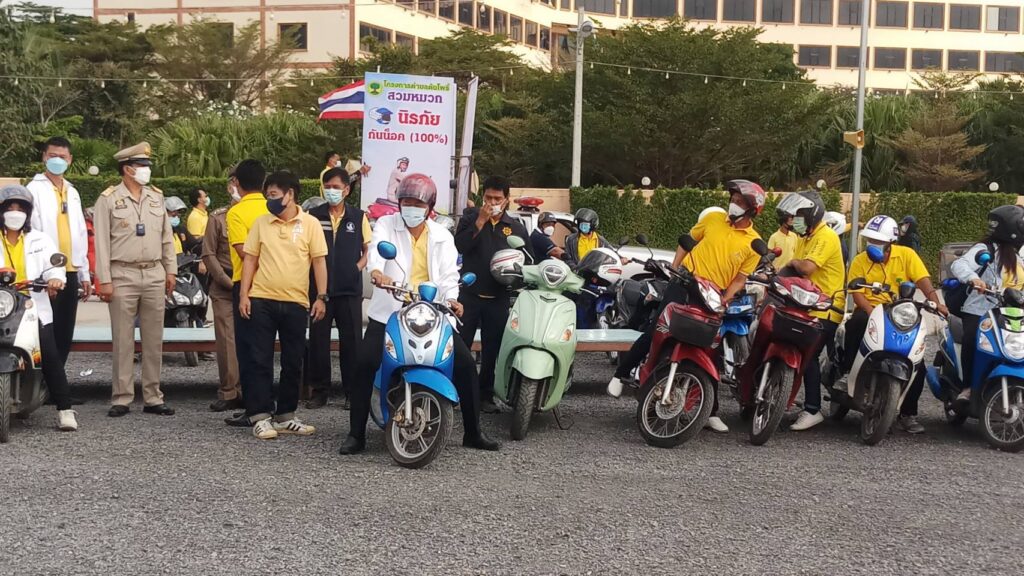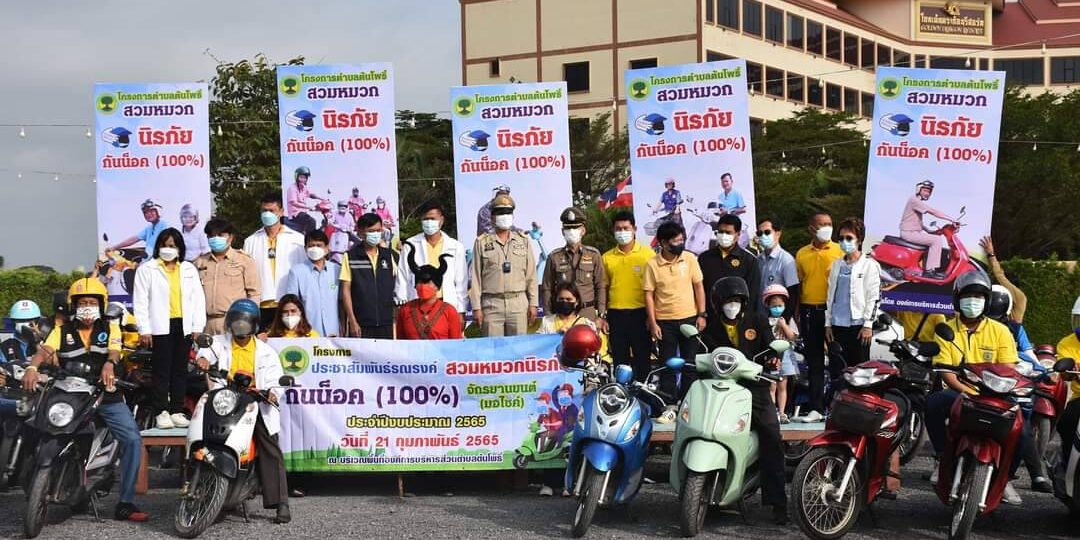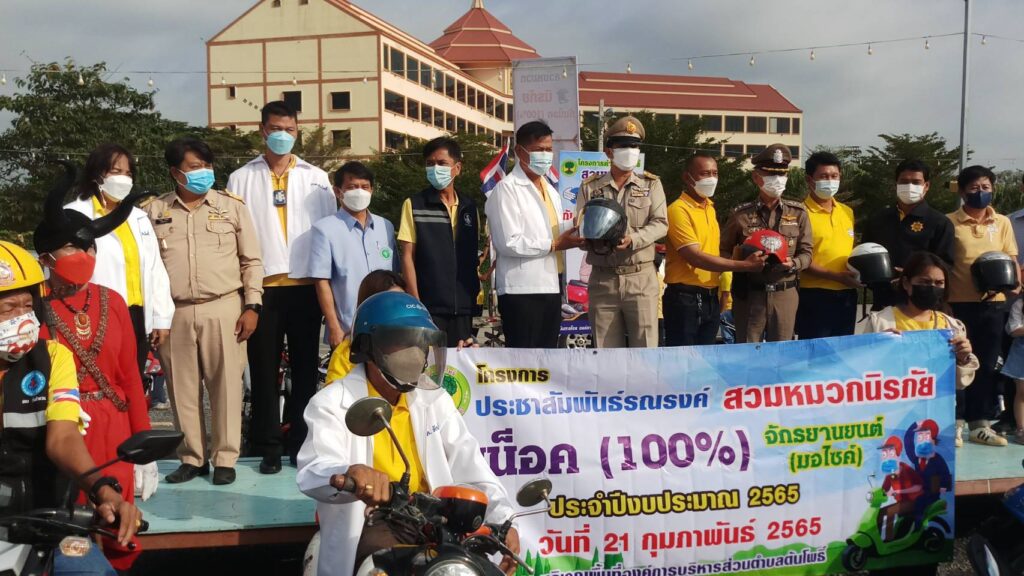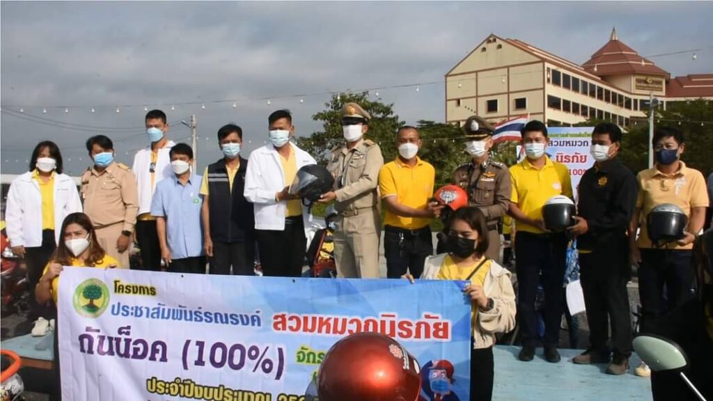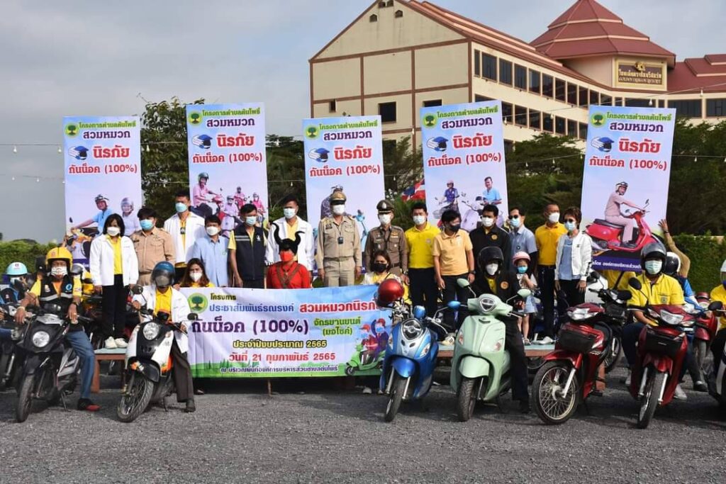 วันที่ 21 กุมภาพันธ์ 2565 นายปัญญา ใช้เฮ็ง นายอำเภอเมืองสิงห์บุรี พ.ต.อ.ไพฑูร ตันเจริญรัตน์ ผู้กำกับการสถานีตำรวจภูธรเมืองสิงห์บุรี นายวีรยุทธ รวดเร็ว ประชาสัมพันธ์จังหวัดสิงห์บุรี นายสุริโย นุวรรณโน นายก อบต.ต้นโพธิ์ พร้อมด้วย สมาชิกสภา อบต.ต้นโพธิ์ กำนัน ผู้ใหญ่บ้าน อสม. สมาคมกู้ภัยสิงห์บุรีร่วมกับองค์กรภาคเอกชน ดำเนินโครงการประชาสัมพันธ์รณรงค์สวมหมวกกันน๊อค 100% ขี่จักรยานยนต์ โดยมี นายโชติวุฒิ ธนาคมานุสรณ์ ส.ส.สิงห์บุรี เป็นผู้ปล่อยขบวนรถประชาสัมพันธ์กิจกรรมเชิงรุกให้ผู้เข้าร่วมโครงการขับขี่รถจักรยานยนต์สวมหมวกกันน๊อค 100% พร้อมกันที่จุดเริ่มต้น ณ บริเวณหน้า cs Park ไชยแสง ตำบลต้นโพธิ์ อำเภอเมืองสิงห์บุรี จังหวัดสิงห์บุรี ซึ่งนายชัยชาญ สิทธิวิรัชธรรม ผู้ว่าราชการจังหวัดสิงห์บุรี ถือให้เป็นวาระจังหวัด ตามที่คณะกรรมการนโยบายการป้องกันและลดอุบัติเหตุทางถนนแห่งชาติให้หน่วยงานที่เกี่ยวข้องดำเนินการลดอุบัติเหตุทางถนน