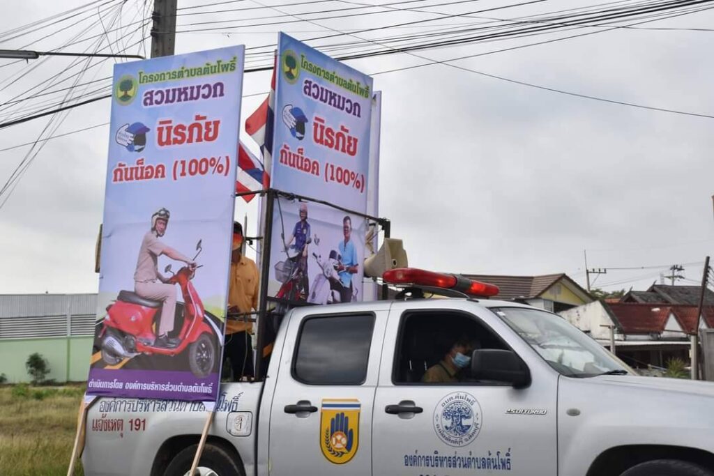 ทั้งนี้ขบวนรถประชาสัมพันธ์ นำโดย นายกอบต.ต้นโพธิ์ กำนัน ผู้ใหญ่บ้าน อสม. และประชาชนตำบลต้นโพธิ์ ขี่รถมอเตอร์ไซด์สวมหมวก พร้อมรถโรงศพและป้ายประชาสัมพันธ์รณรงค์สวมหมวกกันน๊อค ขับไปรอบๆ อำเภอเมืองสิงห์บุรี ให้ประชาชนที่ขับขี่รถจักรยานยนต์ ได้ตระหนักถึงความปลอดภัยโดยสวมหมวกกันน๊อคทุกครั้งเมื่อขับขี่รถจักรยานยนต์สัญจรบนท้องถนนช่วยลดความเสี่ยงของการบาดเจ็บจากอุบัติเหตุทางองค์การบริหารส่วนตำบลต้นโพธิ์ หวังว่าการรณรงค์สวมหมวกกันน๊อค 100% นี้จะช่วยสร้างพฤติกรรมในการใช้รถใช้ถนนที่ปลอดภัยยิ่งขึ้น ลดการสูญเสียชีวิตและการบาดเจ็บด้านสมองเพราะการสัญจรบนท้องถนนไม่สวมหมวกกันน๊อค