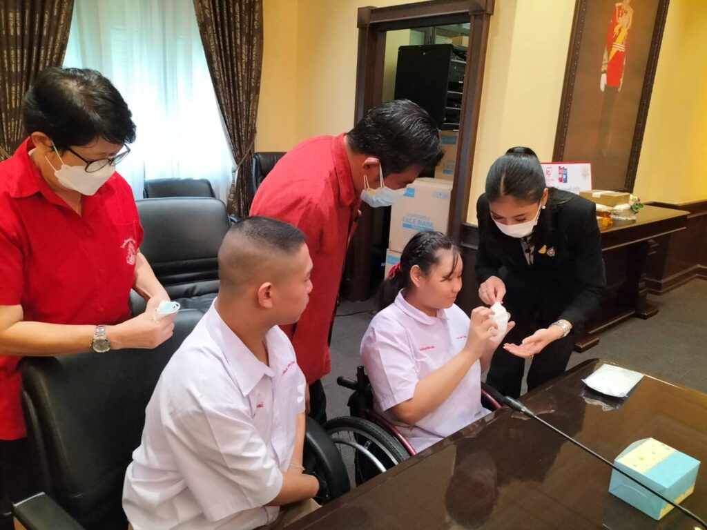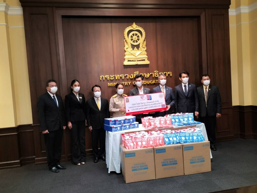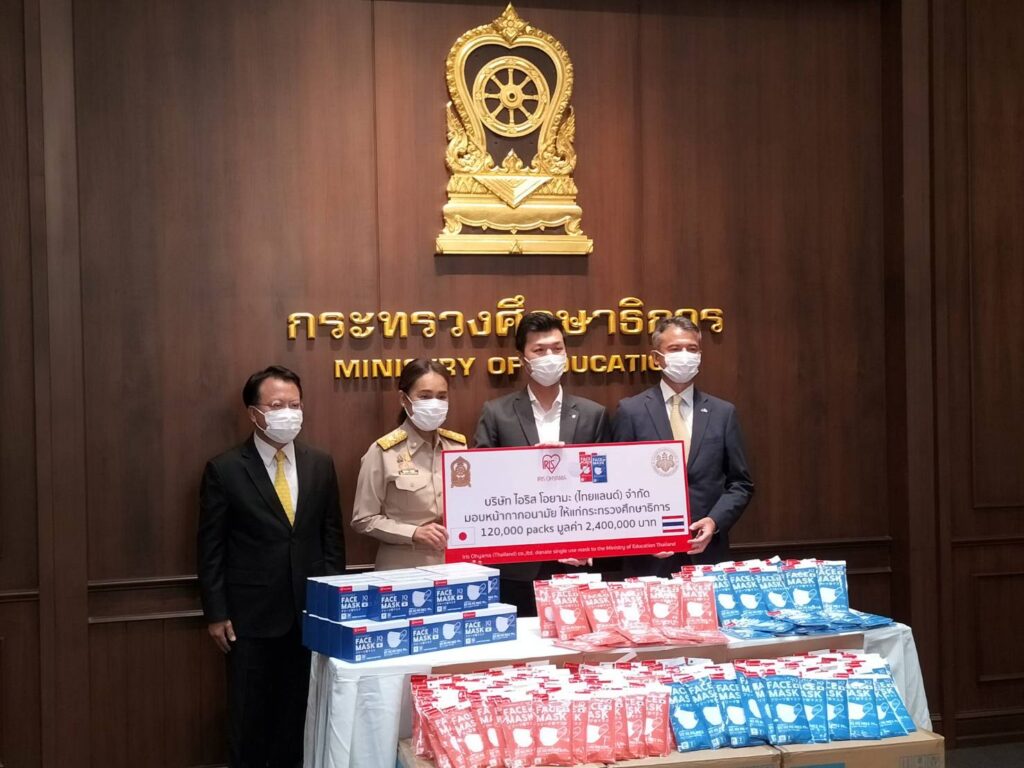 ที่เดินทางมามอบหน้ากากอนามัยจากบริษัทไอริส โอยามะ (ประเทศไทย) จำกัด