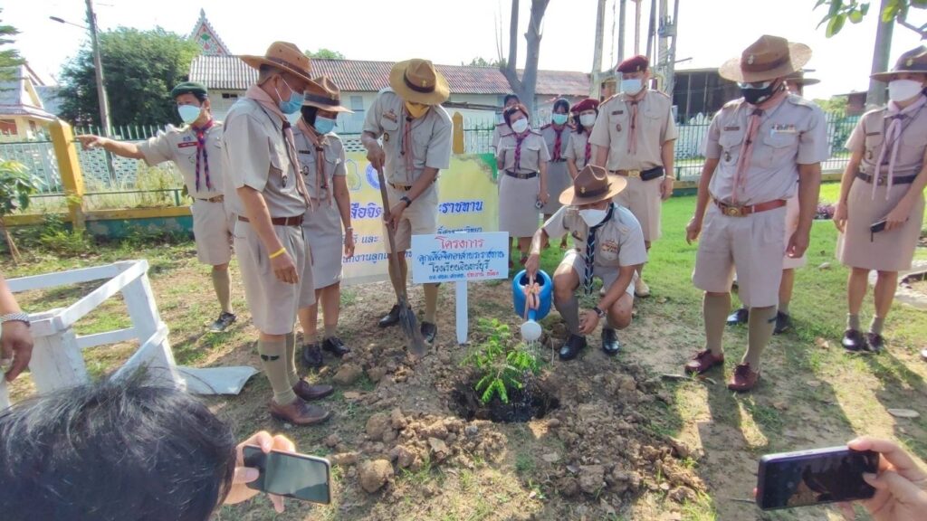หลังจากนั้นประธานในพิธี วิทยากรที่ปรึกษา วิทยากรแกนนำลูกเสือจิตอาสาพระราชทานประจำจังหวัดสิงห์บุรี และคณะวิทยากรจากโรงเรียนต่างๆ ทั้ง สพป.สิงห์บุรี และ สพม.สิงห์บุรี อ่างทอง รวมทั้ง ลูกเสือ – เนตรนารี จิตอาสาพระราชทานได้ร่วมกันปลูกต้นไม้ คือ ต้นมะกล่ำ จำนวน 2 ต้น ณ สวนเฉลิมพระเกียรติ ร.10 และทำการฝึกอบรมจนเสร็จสิ้นตามระยะเวลาที่โครงการได้กำหนดต่อไป