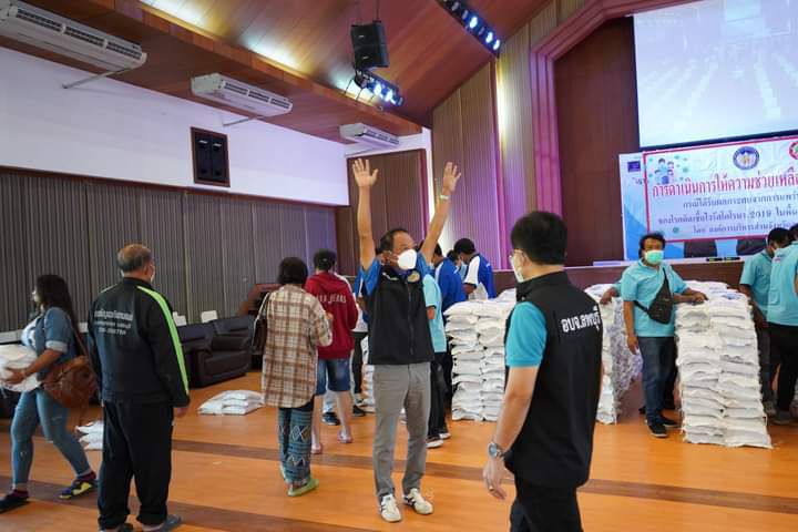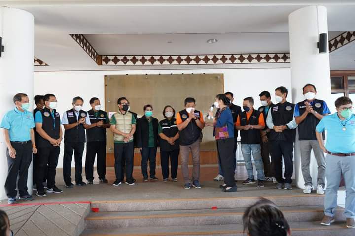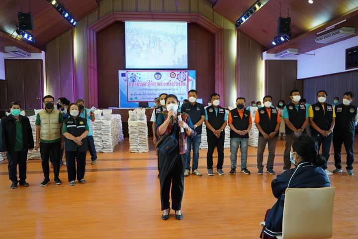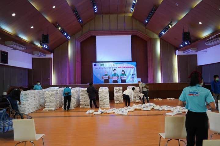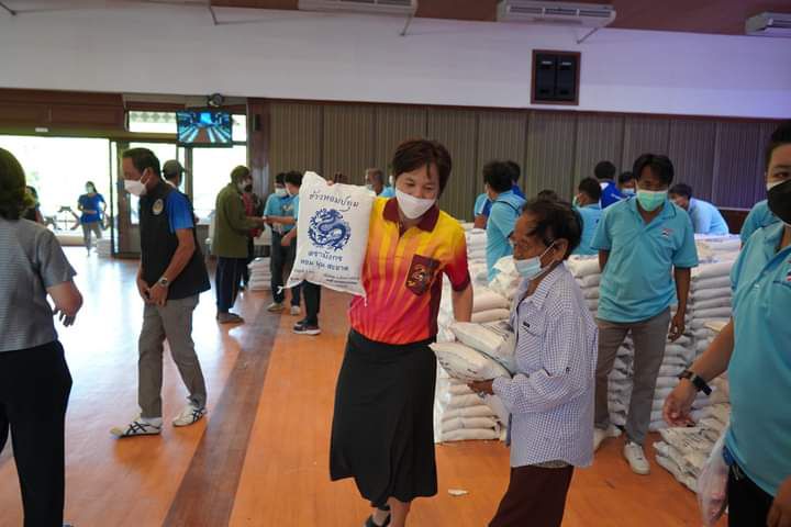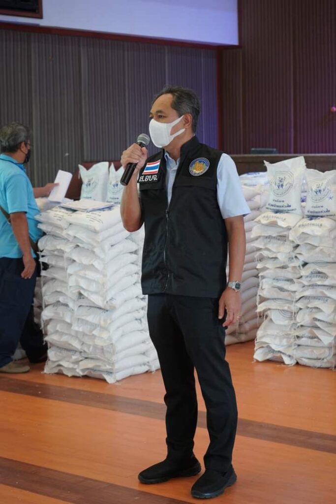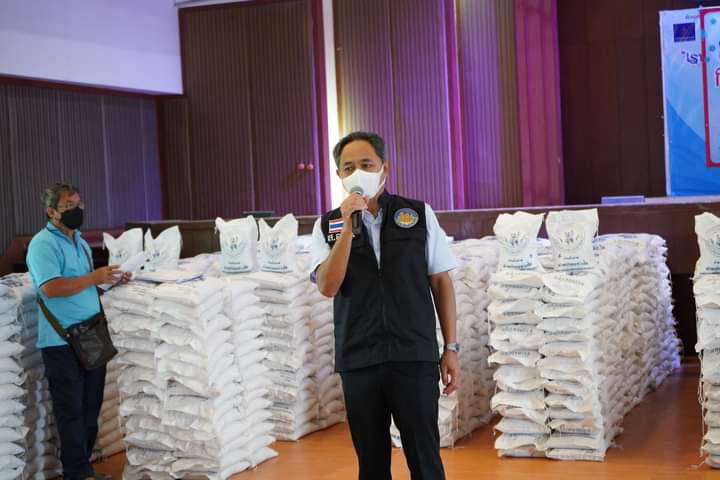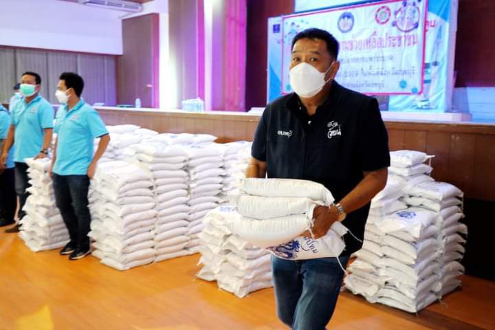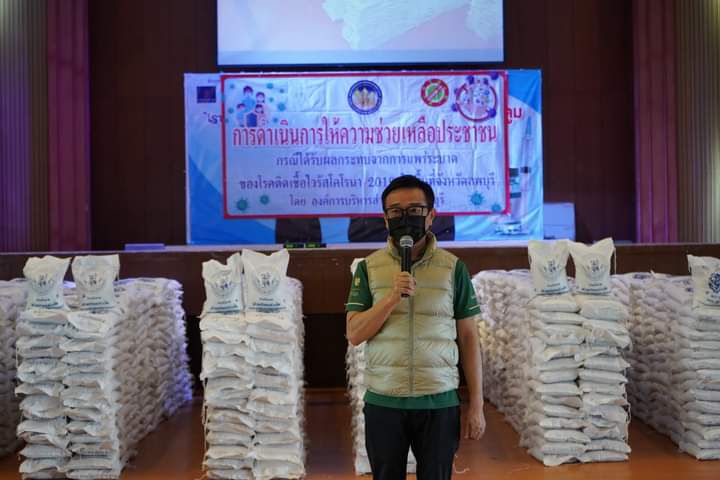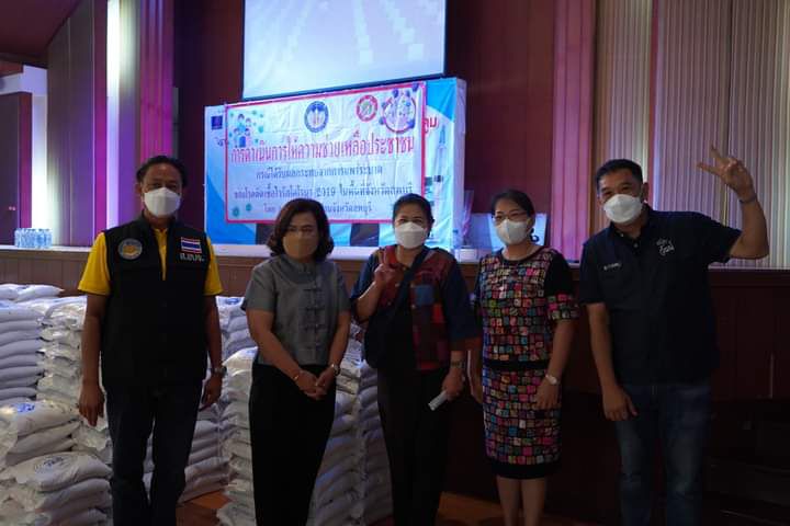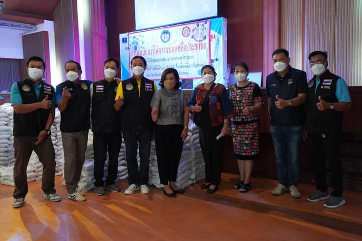 พร้อมด้วยคณะผู้บริหารและหัวหน้าส่วนราชการในสังกัด ร่วมลงพื้นที่ทำการมอบข้าวสารให้กับประชาชน ในเขต อ.เมืองลพบุรี ณ หอประชุมเทศบาลตำบลโคกตูม