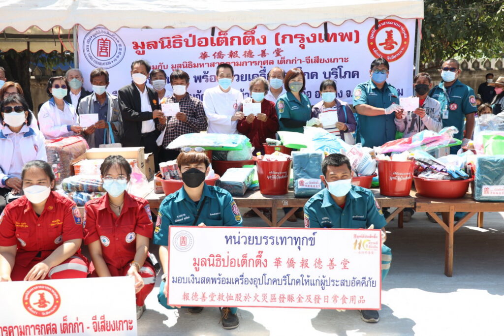 วานนี้ (วันศุกร์ที่ 25 กุมภาพันธ์ 2565 เวลา 11.00 น.) มูลนิธิป่อเต็กตึ๊ง นำโดย นางศิริพร กระจ่างหล้า รักษาการผู้จัดการฝ่ายสังคมสงเคราะห์ / หัวหน้าแผนกสังคมสงเคราะห์ พร้อมด้วยนายรัชพร ประสงค์ทรัพย์ ผู้ช่วยหัวหน้าแผนกสังคมสงเคราะห์ นำทีมลงพื้นช่วยเหลือผู้ประสบอัคคีภัยบริเวณบ้านภูดิน ตำบลโคกก่อ อำเภอเมือง จังหวัดมหาสารคาม โดยมอบเงินสด คนละ 3,000 บาท จำนวน 40 คน พร้อมมอบเครื่องอุปโภคบริโภคทั้งรายครอบครัว และรายบุคคล รวมงบประมาณเป็นเงินทั้งสิ้น 139,000 บาท (หนึ่งแสนสามหมื่นเก้าพันบาทถ้วน) โดยมี นายประศาสตร์ ธุระนิตย์ นายกองค์การบริหารส่วนตำบลโคกก่อ พร้อมด้วยนายสมเพ็ชร งามศิริจิตต์ ประธานมูลนิธิมหาสารคามการกุศล ร่วมในพิธี ณ บริเวณบ้านภูดิน ตำบลโคกก่อ อำเภอเมือง จังหวัดมหาสารคาม