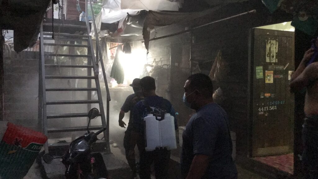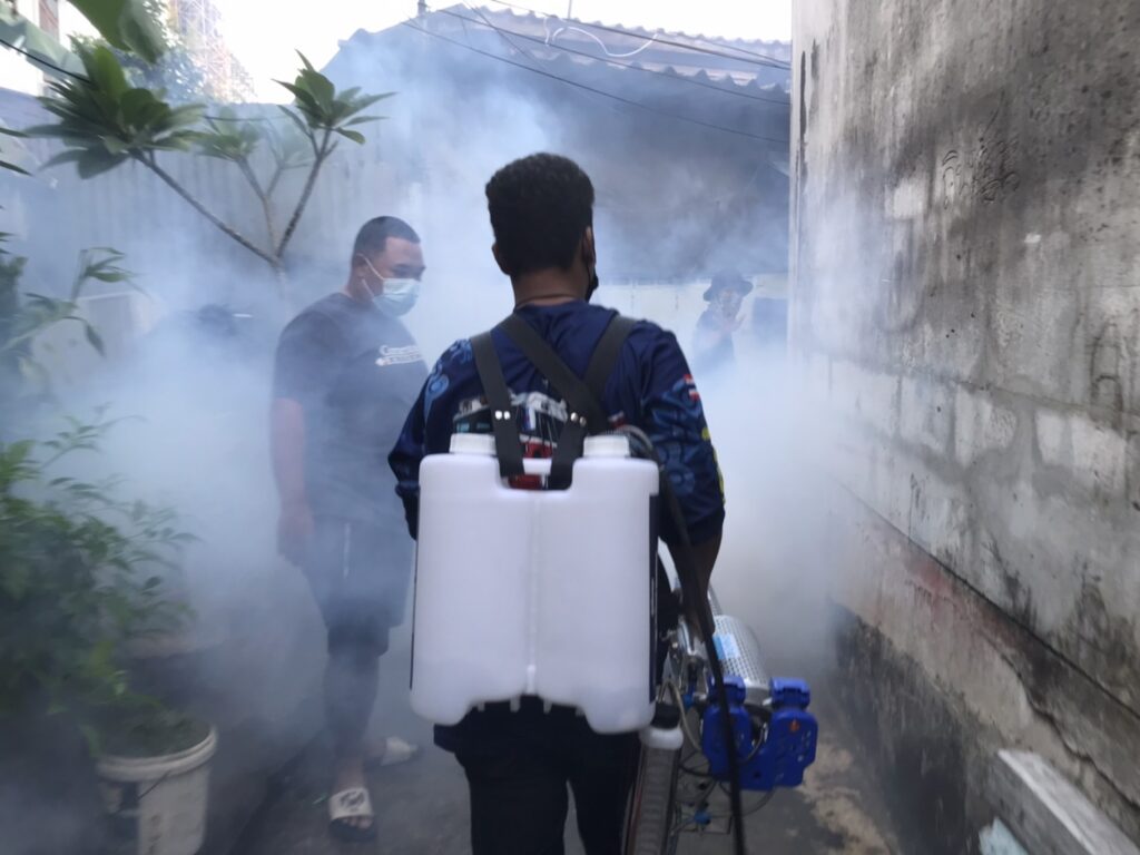 จัดทีมงานอาสาสมัคร ลงพื้นที่พ่นยาฆ่าเชื้อให้แก่ชุมชนเนื่องจากมีชาวชุมชนได้รับความเดือดร้อนจากเชื้อไวรัสโควิด-19 จำนวนหลายคนและเพื่อความปลอดภัยให้ประชาชนภายในชุมชน ซึ่งชุมชนนี้มีจำนวน 100 หลังคาเรือนและ บริเวรโดยรอบๆของชุมชนและห้องพักของผู้กักตัวเพื่อรอรถนำส่งโรงพยาบาลและได้รับแจ้งจากทางประธานชุมชนได้กล่าวขอขอบคุณ ดร.พีรวัฒน์-ดร.ธัชวิน สุรเศรษฐ ประธาน กต.ตร.กทม.