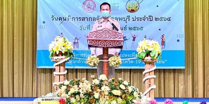 วันจันทร์ที่ 28 กุมภาพันธ์ 2565 เวลา 09.30 น. ภายใต้การนำของนายนิวัฒน์ รุ่งสาคร ผู้ว่าราชการจังหวัดลพบุรี มอบหมายให้นายสุภกิณห์ แวงชิน รองผู้ว่าราชการจังหวัดลพบุรี เป็นประธานในพิธีเปิดงานวันคนพิการสากลจังหวัดลพบุรี และมอบเกียรติคุณยกย่องเชิดชูองค์กรดีเด่นที่ให้การสนับสนุนงานด้านคนพิการ อาสาสมัครที่มีจิตอาสางานด้านคนพิการ ณ อาคารอเนกประสงค์โรงเรียนเทศบาลเมืองเขาสามยอด อำเภอเมืองลพบุรี จังหวัดลพบุรี