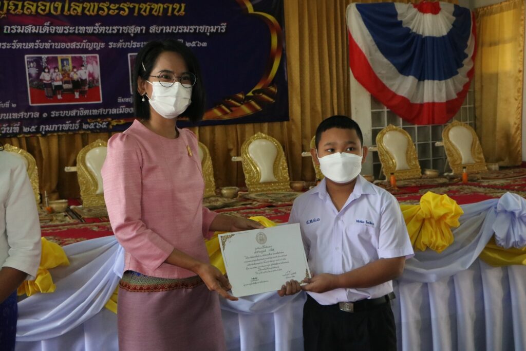 นายจำเริญ สละชีพ นายกเทศมนตรีเมืองลพบุรี ได้มอบให้ นายสมชัย อินปุระ รองนายกเทศมนตรีเมืองลพบุรี เป็นประธานพิธีทำบุญฉลองโล่พระราชทาน สมเด็จพระกนิษฐาธิราชเจ้า กรมสมเด็จพระเทพรัตนราชสุดาฯ สยามบรมราชกุมารี พร้อมด้วย นายอนุสรณ์ อัศวสงคราม รองนายกเทศมนตรีเมืองลพบุรี นางเยาวลักษณ์ พรประเสริฐ ผู้อำนวยการกองการศึกษาเทศบาลเมืองลพบุรี คณะกรรมการสถานศึกษาขั้นพื้นฐานโรงเรียนเทศบาล ๑ ระบบสาธิตเทศบาลเมืองลพบุรี โดยมี นางเรวดี แสงเรือง รักษาราชการแทนผู้อำนวยการสถานศึกษา โรงเรียนเทศบาล ๑ ระบบสาธิตเทศบาลเมืองลพบุรี คณะครู-นักเรียน ให้การต้อนรับที่โรงเรียนเทศบาล ๑ ระบบสาธิตเทศบาลเมืองลพบุรี ในการประกวดสวดมนต์หมู่สรรเสริญพระรัตนตรัย ทำนองสรภัญญะระดับประเทศ ในโอกาสที่นักเรียนได้เข้าเฝ้ารับพระราชทานโล่รางวัลจากการสวดมนต์หมู่สรรเสริญพระรัตนตรัยทำนองสรภัญญะ ระดับประเทศประจำปี ๒๕๖๓ จากสมเด็จพระกนิษฐาธิราชเจ้ากรมสมเด็จพระเทพรัตน์ราชสุดาสยามบรมราชกุมารีวันที่ ๒๓ กุมภาพันธ์๒๕๖๕ ณ วัดปทุมวนาราม กทม. จำนวน ๒ รางวัล ดังนี้ ๑.ทีมชายล้วนได้รับรางวัลรองชนะเลิศอันดับ ๒ และ ๒. ทีมหญิงล้วน ได้รับรางวัลรองชนะเลิศอันดับ ๔ จากนั้น พระครูวิมลญาณอุดม เจ้าอาวาสวัดมณีชลขันธ์ ได้มอบทุนการศึกษาให้กับนักเรียน ๒๒ คน คนละ ๕๐๐ บาท เป็นเงิน ๑๑,๐๐๐ บาท และนางโชติรส โสภี ตัวแทนวัฒนธรรมจังหวัดลพบุรี ชมเชยอันดับ ๒ การประกวดสวดมนต์หมู่สรรเสริญพระรัตนตรัยทำนองสรภัญญะระดับประเทศประจำปี ๒๕๖๔ ให้กับนักเรียนทีมชายและทีมหญิง