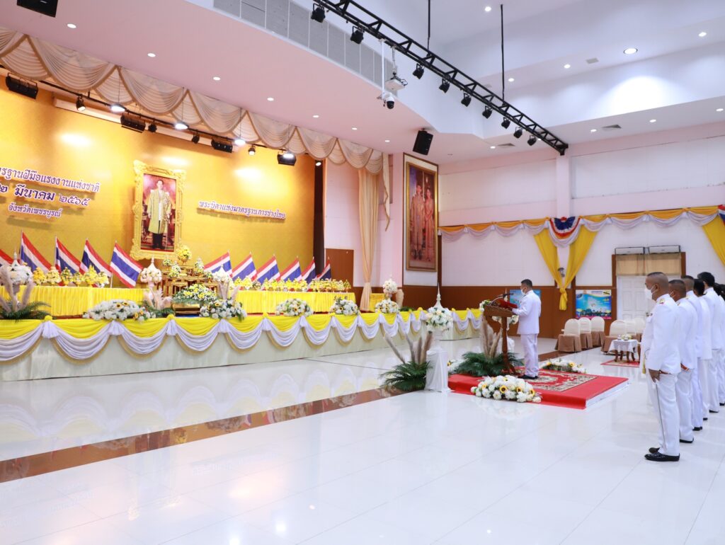 ที่หอประชุมศูนย์ราชการจังหวัดเพชรบูรณ์ นายอำนาจ แย้มศิริ รองผู้ว่าราชการจังหวัดเพชรบูรณ์ เป็นประธานวางพานพุ่มดอกไม้สดหน้าพระบรมฉายาลักษณ์พระบาทสมเด็จพระบรมชนกาธิเบศร มหาภูมิพลอดุลยเดชมหาราช บรมนาถบพิตร เนื่องในวันมาตรฐานฝีมือแรงงานแห่งชาติ ประจำปี 2565 พร้อมด้วย หัวหน้าส่วนราชการ ทหาร ตำรวจ ตุลาการ อัยการ ข้าราชการสังกัดกระทรวงแรงงาน เข้าร่วม