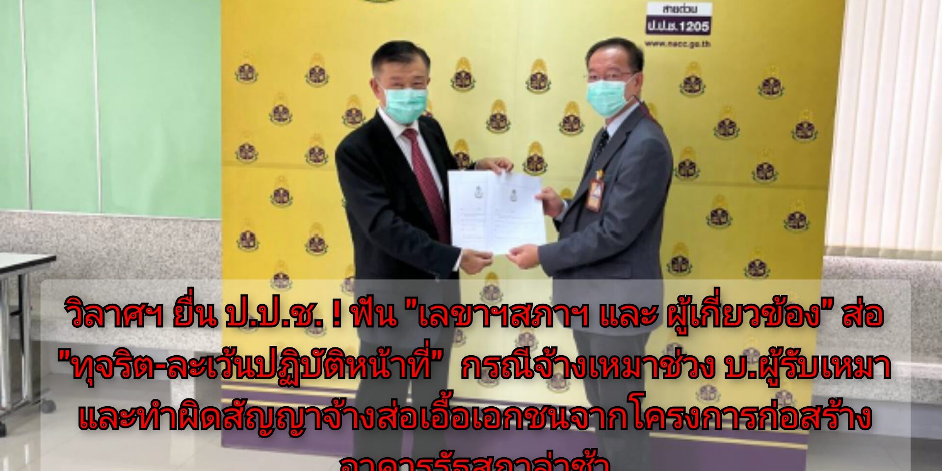 วันนี้ (2มี.ค.65) ที่ สำนักงานป.ป.ช. นายวิลาศ จันทร์พิทักษ์ อดีต.ส.ส.พรรคประชาธิปัตย์ ยื่นหนังสือถึง เลขาธิการคณะกรรมการป้องกันและปราบปรามการทุจริตแห่งชาติ (ป.ป.ช.) เรื่องขอให้ตรวจสอบการจงใจละเว้นการปฏิบัติหน้าที่ ส่อว่ากระทำความผิดฐานทุจริตต่อหน้าที่ราชการของเลขาธิการสภาผู้แทนราษฎร และ ผู้เกี่ยวข้อง กรณีที่สำนักงานเลขาธิการสภาผู้แทนราษฎรได้ทำสัญญาก่อสร้างเลขที่ 116/56 ลงวันที่ 30เม.ย.56 วงเงินค่าก่อสร้าง 12,280 ล้านบาท ในสัญญาก่อสร้างฉบับดังกล่าวข้อ 11 เรื่องการจ้างช่วงมีข้อความว่า “ผู้รับจ้างต้องไม่เอางานทั้งหมดหรือบางส่วนแห่งสัญญานี้ไปจ้างช่วงอีกต่อหนึ่งโดยไม่ได้รับความยินยอมเป็นหนังสือจากผู้ว่าจ้างก่อน…………..”