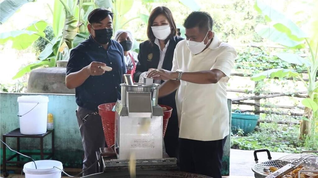 ต่อจากนั้นในช่วงบ่าย ผู้ตรวจราชการสำนักนายกรัฐมนตรี พร้อมคณะผู้ตรวจราชการ เดินทางไปตรวจติดตามผลการดำเนินงานโครงการ 1 ตำบล 1 กลุ่มเกษตรทฤษฎีใหม่พื้นที่ของนายกษิดิ์เดช เจริญทรัพย์ปัญญา หมู่ที่ 1 ตำบลโพกรวม อำเภอเมืองสิงห์บุรี จังหวัดสิงห์บุรี เกษตรกรที่ส่งผลงานเข้าประกวดในระดับจังหวัด โดยคณะกรรมการฯ ได้ให้คำแนะนำแก่ผู้เข้าร่วมการประกวด เพื่อพัฒนาศักยภาพผลงานและเตรียมความพร้อมสู่การประกวดในระดับเขตต่อไป และคณะผู้ตรวจได้เดินทางไปตรวจเยี่ยมวิสาหกิจชุมชนขนมหวานทองเอน หมู่ที่ 1 ตำบลทองเอน อำเภออินทร์บุรี จังหวัดสิงห์บุรี โครงการเพิ่มมูลค่าสินค้าเกษตรแปรรูปและผลิตภัณฑ์ ซึ่งกลุ่มขนมหวานบ้านทองเอน ผลิตขนมหวานแปรรูปจากพืชผลทางการเกษตร เช่น ถั่วลิสง เผือก มันเทศ ฟักทอง กล้วย ลูกเดือย เพื่อพัฒนาสินค้าและผลิตภัณฑ์ ส่วนใหญ่การจำหน่ายผลิตภัณฑ์จะมีทั้งรูปแบบขายส่งและขายปลีกตามร้านค้าในพื้นที่จังหวัดสิงห์บุรี และเส้นทางถนนสายเอเชีย สร้างรายได้ให้ชุมชนอย่างยั่งยืน