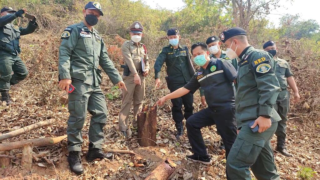 เมื่อวันที่ 2 มีนาคม 2565 คณะเจ้าหน้าที่ประกอบด้วย นายภูรีย์วัฒน์ จันแจ เจ้าพนักงานป่าไม้ชำนาญงาน ทำหน้าที่หัวหน้าหน่วยป้องกันและพัฒนาป่าไม้วังโป่ง , เจ้าหน้าที่ตำรวจกองกำกับการ4 กองบังคับการปราบปรามการกระทำความผิดเกี่ยวกับทรัพยากรธรรมชาติและสิ่งแวดล้อม (กก.4 บก.ปทส.) , ร.ต.อ.นเรนท์ คำวิ่ง รอง.สว.กก.4 บก.ปทส. , เจ้าหน้าที่ตำรวจตระเวนชายแดนเพชรบูรณ์ ,พ.ต.อ.นเรศ พูลหน่าย ผกก.สภ.วังโป่งพร้อมเจ้าหน้าที่ตำรวจ สภ.วังโป่ง ตลอดจนผู้ใหญ่บ้าน ผู้ช่วยฯหมู่ที่ 16 บ้านวังสะพุงใต้ ตำบลวังหิน ได้ร่วมกันออกตรวจปราบปรามการกระทำผิดกฎหมายเกี่ยวกับการป่าไม้ ในท้องที่ บ้านวังสะพุงใต้ หมู่ที่ 16 ตำบลวังหิน อำเภอวังโป่ง จังหวัดเพชรบูรณ์ หลังจากได้รับแจ้งจาก ประชาชนในพื้นที่ ว่าเมื่อวันที่ 25 กุมภาพันธ์2565 พบมีการลักลอบเข้าไปตัดไม้เบญจพรรณนาๆชนิดเป็นบริเวณกว้าง เพื่อขยายพื้นที่และปลูกพืชผลทางการเกษตร โดยนายทุนจากต่างท้องที่ ซึ่งพื้นที่ดังกล่าวนั้นเป็นการบุกรุกแผ้วถางป่าใหม่ ทางเจ้าหน้าที่จึงได้สนธิกำลังเข้าไปทำการ
