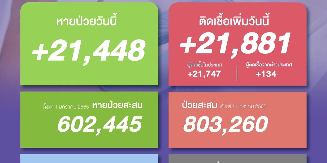 หายป่วยสะสม 602,445 ราย (ตั้งแต่ 1 มกราคม 2565)