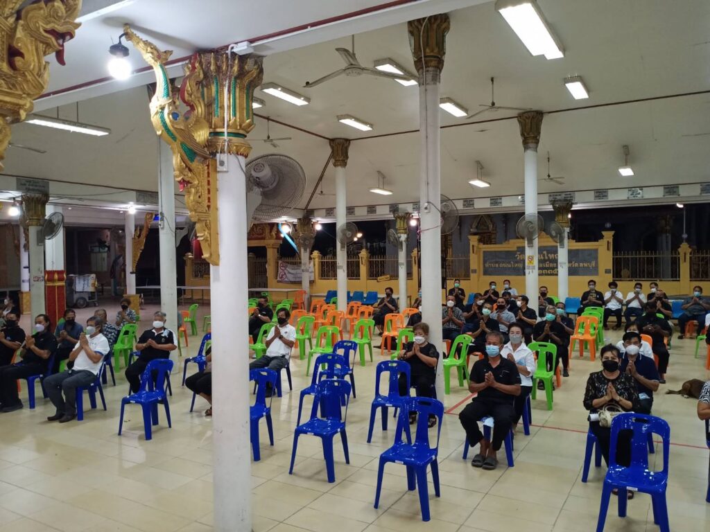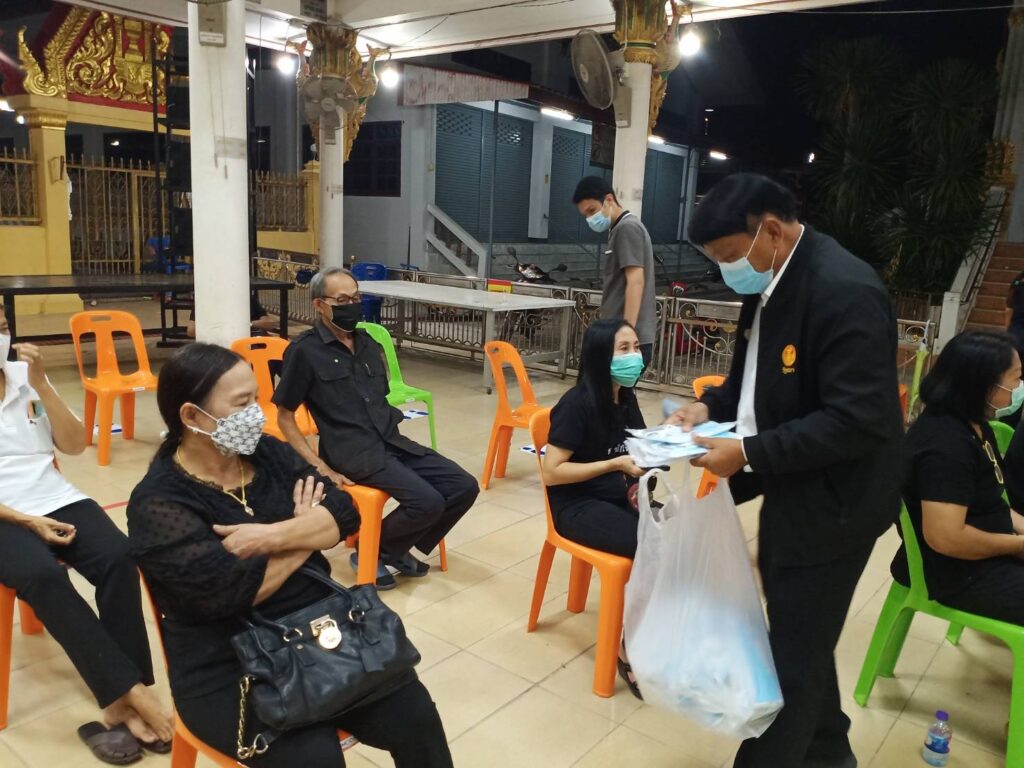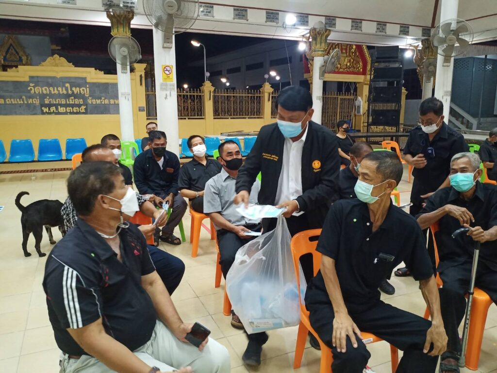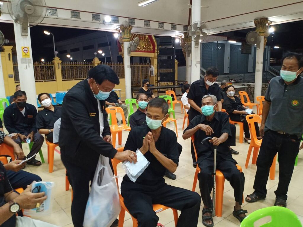 คุณประนอม อยู่สมบูรณ์ อดีตสมาชิกสภาเทศบาลตำบลถนนใหญ่ และ พ่อ แม่ พี่ น้อง ทีมงาน อสม.หมู่ 5,6 ตำบลถนนใหญ่