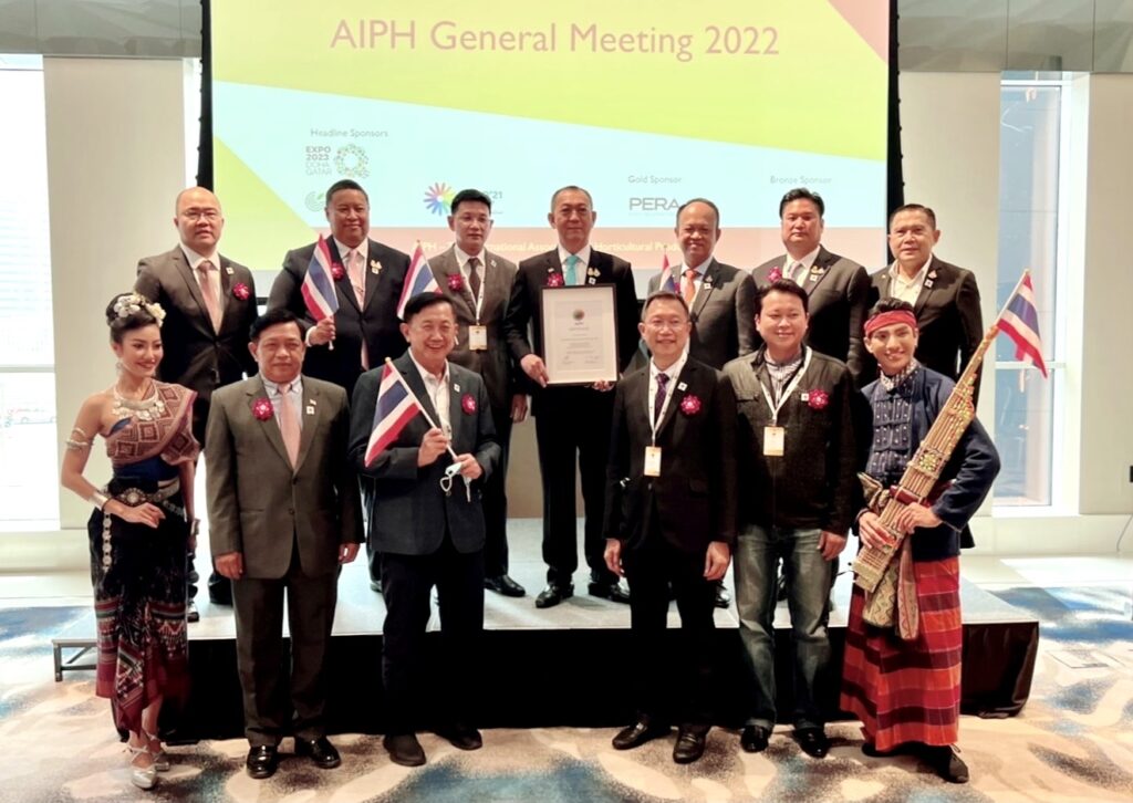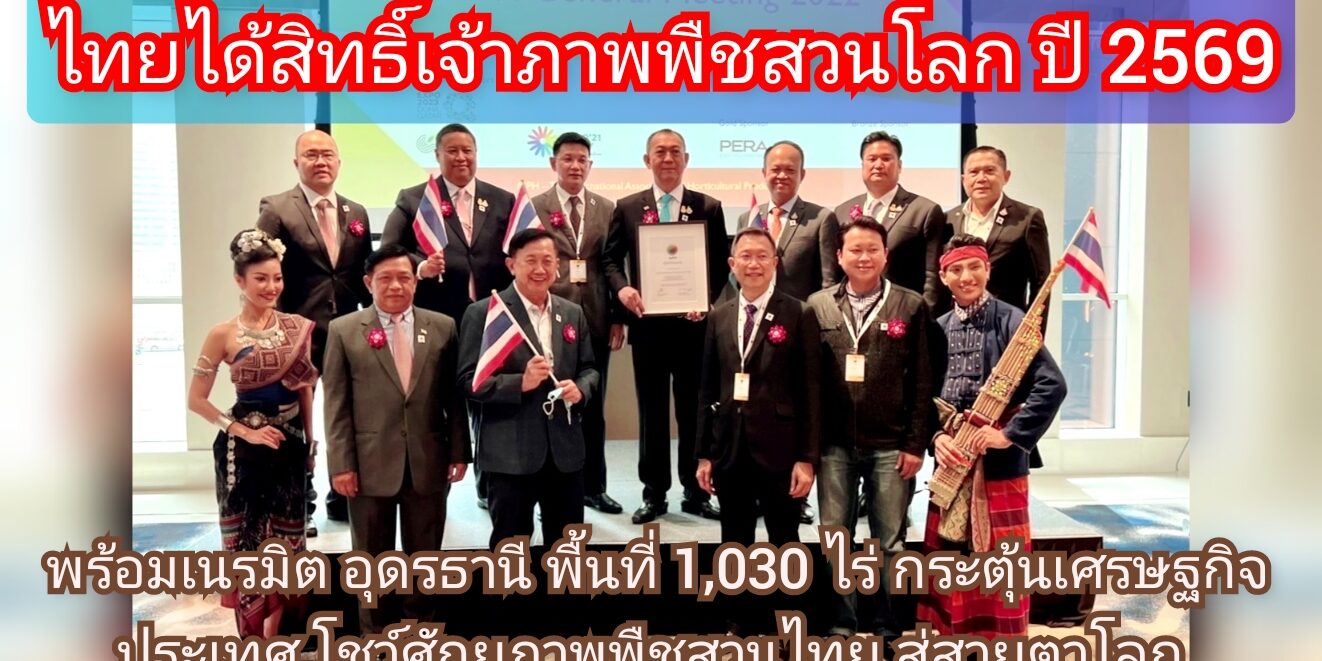 ดร.เฉลิมชัย ศรีอ่อน รัฐมนตรีว่าการกระทรวงเกษตรและสหกรณ์ พร้อมด้วย ดร.ทองเปลว กองจันทร์ ปลัดกระทรวงเกษตรและสหกรณ์ นายระพีภัทร์ จันทรศรีวงศ์ อธิบดีกรมวิชาการเกษตร นายสยาม ศิริมงคล ผู้ว่าราชการจังหวัดอุดรธานี และ นายจิรุตถ์ อิศรางกูร ณ อยุธยา ผู้อำนวยการสำนักงานส่งเสริมการจัดการประชุมและนิทรรศการ (องค์การมหาชน) (TCEB หรือ สสปน.) เข้าร่วมการประชุมสมาคมพืชสวนโลก(International Association of Horticultural Producers : AIPH) โดยในวันนี้ AIPH ได้ประกาศการคัดเลือกอย่างเป็นทางการ ให้ประเทศไทยเป็นเจ้าภาพการจัดงานมหกรรมพืชสวนโลกจังหวัดอุดรธานี พ.ศ. 2569 (ระดับ B) ณ Crowne Plaza Dubai Marina เมืองดูไบ สหรัฐอาหรับเอมิเรตส์ ภายใต้แนวคิด Diversity of Life: Connecting people, water and plants for sustainable living (วิถีชีวิตสายน้ำและพืชพรรณ) ระยะเวลาจัดงานระหว่างวันที่ 1 พฤศจิกายน 2569 – 14 มีนาคม 2570 (134 วัน) บริเวณพื้นที่ชุ่มน้ำหนองแด ตำบลกุดสระ อำเภอเมือง จังหวัดอุดรธานี บนเนื้อที่ 1,030 ไร่ แบ่งเป็น พื้นน้ำ 400 ไร่ และพื้นดิน 630 ไร่ คาดว่าจะทำให้มีจำนวนผู้เข้าชมงานถึง 3.6 ล้านคน โดยคาดว่าจะสามารถเพิ่มเงินสะพัดระหว่างการจัดงานประมาณ 3 หมื่นล้านบาท สามารถเพิ่มมูลค่าการสร้างผลิตภัณฑ์มวลรวม (GDP) ประมาณ 20,000 ล้านบาท และสร้างการจ้างงานประมาณ 81,000 อัตรา