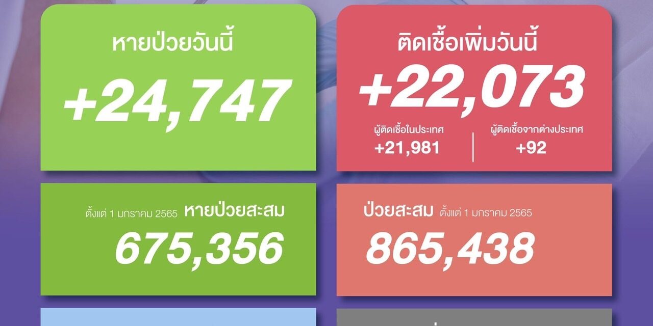 หายป่วยสะสม 675,356 ราย (ตั้งแต่ 1 มกราคม 2565)