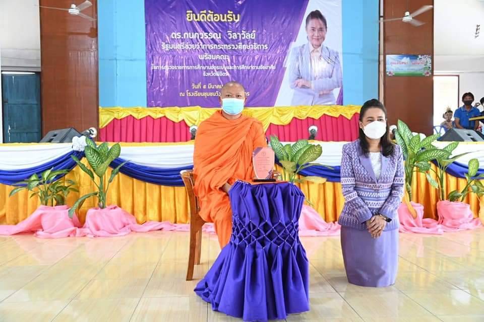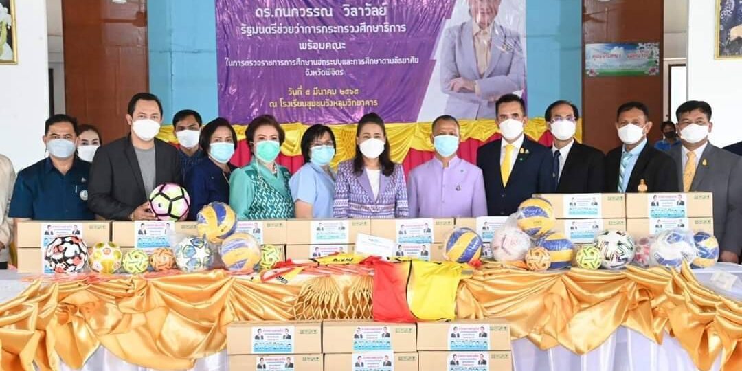 เมื่อวันเสาร์ที่ 5 มีนาคม 2565 : นางกนกวรรณ วิลาวัลย์ รัฐมนตรีช่วยว่าการกระทรวงศึกษาธิการ พร้อมด้วย ดร.ชัยรัตน์ จำนงค์การ ที่ปรึกษา รมช.ศธ. ร่วมพิธีมอบชุดตรวจ ATK หน้ากากอนามัย เจลแอลกอฮอล์ พร้อมด้วยอุปกรณ์กีฬาและทุนการศึกษา เพื่อสร้างความปลอดภัยในการเรียนการสอนในสถานการณ์การแพร่ระบาดของโรคติดเชื้อไวรัสโคโรนา 2019 หรือโควิด-19 พร้อมสร้างโอกาสทางการศึกษา แก่ผู้เรียนในโรงเรียนชุมชนวังหลุมวิทยาคาร ตลอดจนโรงเรียนและสถานศึกษาสังกัด สพฐ. และ กศน. จำนวน 40 แห่ง โดยมีพระครูพิสิทธิ์ธรรโมภาส ดร. เจ้าอาวาสวัดต้นชุมแสง ซึ่งเป็นศิษย์เก่า กศน. และพระอธิการธงชัย ฉันทธัมโม เจ้าอาวาสวัดราฎร์เจริญ ตลอดจนนายชนก มากพันธุ์ รองผู้ว่าราชการจังหวัดพิจิตร ว่าที่ร้อยตรีฉัตรชัย บัวกุล รักษาราชการแทนนายอำเภอทับคล้อ นายธนู อักษร ศึกษาธิการจังหวัดพิจิตร นายจันทบูรณ์ เขตการ ผอ.สำนักงานเขตพื้นที่การศึกษาประถมศึกษา (สพป.) พิจิตร เขต 2 ว่าที่พันตรีดำริห์ ติยะวัฒน์ รักษาการ ผอ.กศน.จังหวัดพิจิตร พร้อมด้วย ผอ.กศน.อำเภอในจังหวัดพิจิตร นางเกศรา ศรีบุญ นายกองค์การบริหารส่วนตำบล (อบต.) วังหลุม นางนัยนา จันทร์เกิด รองนายก อบต.วังหลุม นางพรนิภา จำนงค์การ นักวิชาการสาธารณสุขชำนาญการ รพ.สต.วังหลุม และนายวิรัตน์ เกตุเรือง ผอ.โรงเรียนชุมชนวังหลุมวิทยาคาร ครู นักเรียน และประชาชน ร่วมพิธีด้วย ณ โรงเรียนชุมชนวังหลุมวิทยาคาร อำเภอตะพานหิน จังหวัดพิจิตร
