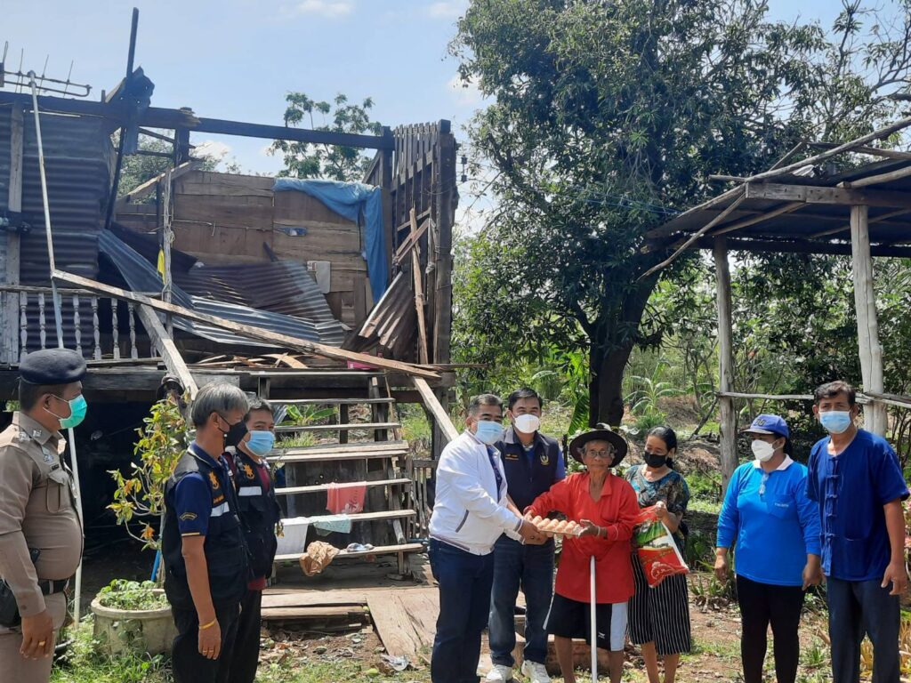 ต่อจากนั้นช่วงบ่ายได้เดินทางไปที่ตำบลห้วยพุกและตำบลสำนักขุนเณร อำเภอดงเจริญเพื่อมอบสิ่งของให้กับชาวบ้านที่ประสบภัยจากพายุฤดูร้อนจำนวน 56 ราย ในตำบลสำนักขุนเณร 45ราย ตำบลห้วยพุกจำนวน10รายและตำบลห้วยร่วมจำนวน1รายโดยมีนายกฤษฎี สิทธิยศ ปลัดอาวุโส นายวรเทพ ก๋องบุญ ปลัดอำเภอ นายมงคล พุกเปี่ยม กำนันตำบลสำนักขุนเณร นายอัครชัย น้อยจันทร์ กำนันตำบลห้วยพุก นายกฤติธี พาอินทร์ เจ้าหน้าที่พลศึกษาอำเภอ และผู้ใหญ่บ้าน ผู้ช่วยผู้ใหญ่บ้าน สารวัตรกำนัน ผู้นำท้องที่ เจ้าหน้าที่ตำรวจร่วมลงพื้นที่ในครั้งนี้