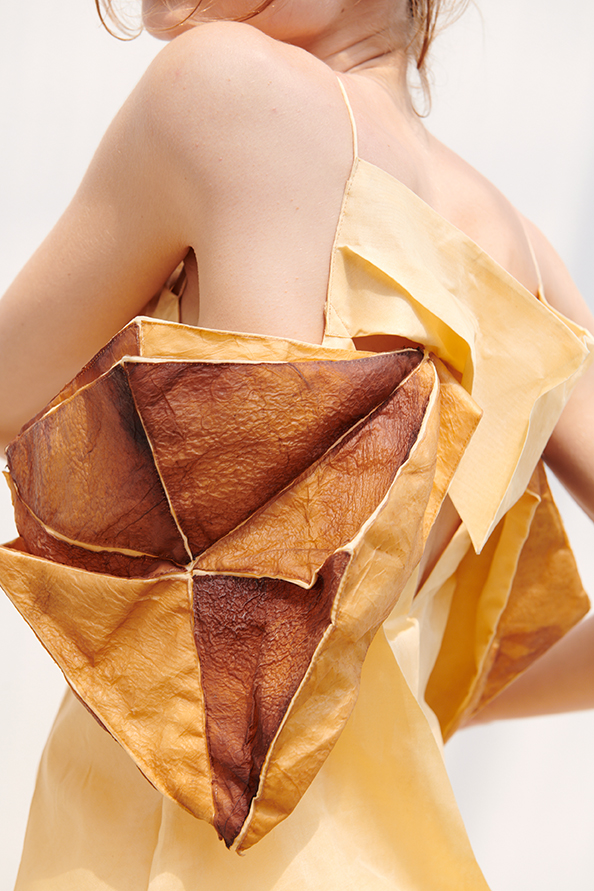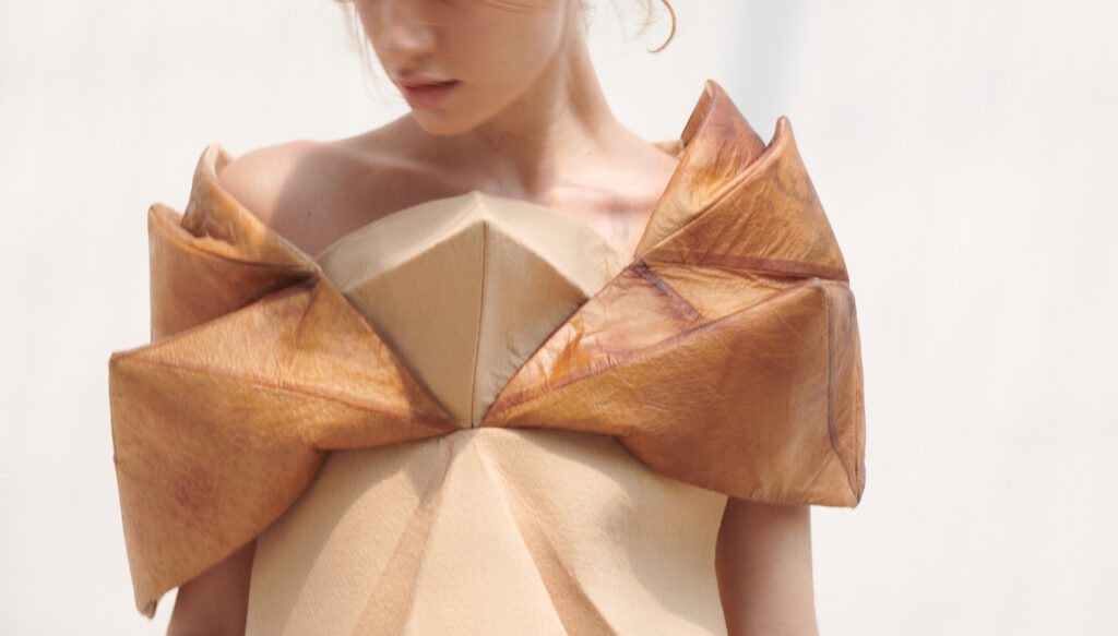 นวัตกรรมการใช้ดินสังเคราะห์เมลานิน ในฐานะวัสดุสิ่งทอทดแทนเพื่อสร้างสรรค์เครื่องนุ่งห่มแห่งอนาคต มุ่งเน้นผลลัพธ์แห่งการสร้างสรรค์นวัตกรรมจากความรู้เชิงวิทยาศาสตร์โดยศึกษาวงจรความสมบูรณ์และการแปรเปลี่ยนคุณสมบัติของ “ดิน” ผ่านกระบวนการทดลองสังเคราะห์เส้นใยธรรมชาติและเมลานินจากแบคทีเรียชั้นดีให้กลายเป็นวัสดุสิ่งทอทดแทนหรือเซลลูโลสชีวภาพอันถือเป็นการเพิ่มคุณค่าและมูลค่าของฐานทรัพยากรธรรมชาติ ตลอดจนการพัฒนาผลลัพธ์ด้วยสุนทรียศาสตร์แห่งการออกแบบให้เกิดเป็นผลิตภัณฑ์แฟชั่นยั่งยืนซึ่งมีความเป็นมิตรกับร่างกายสามารถย่อยสลายและกลับคืนสู่ธรรมชาติ