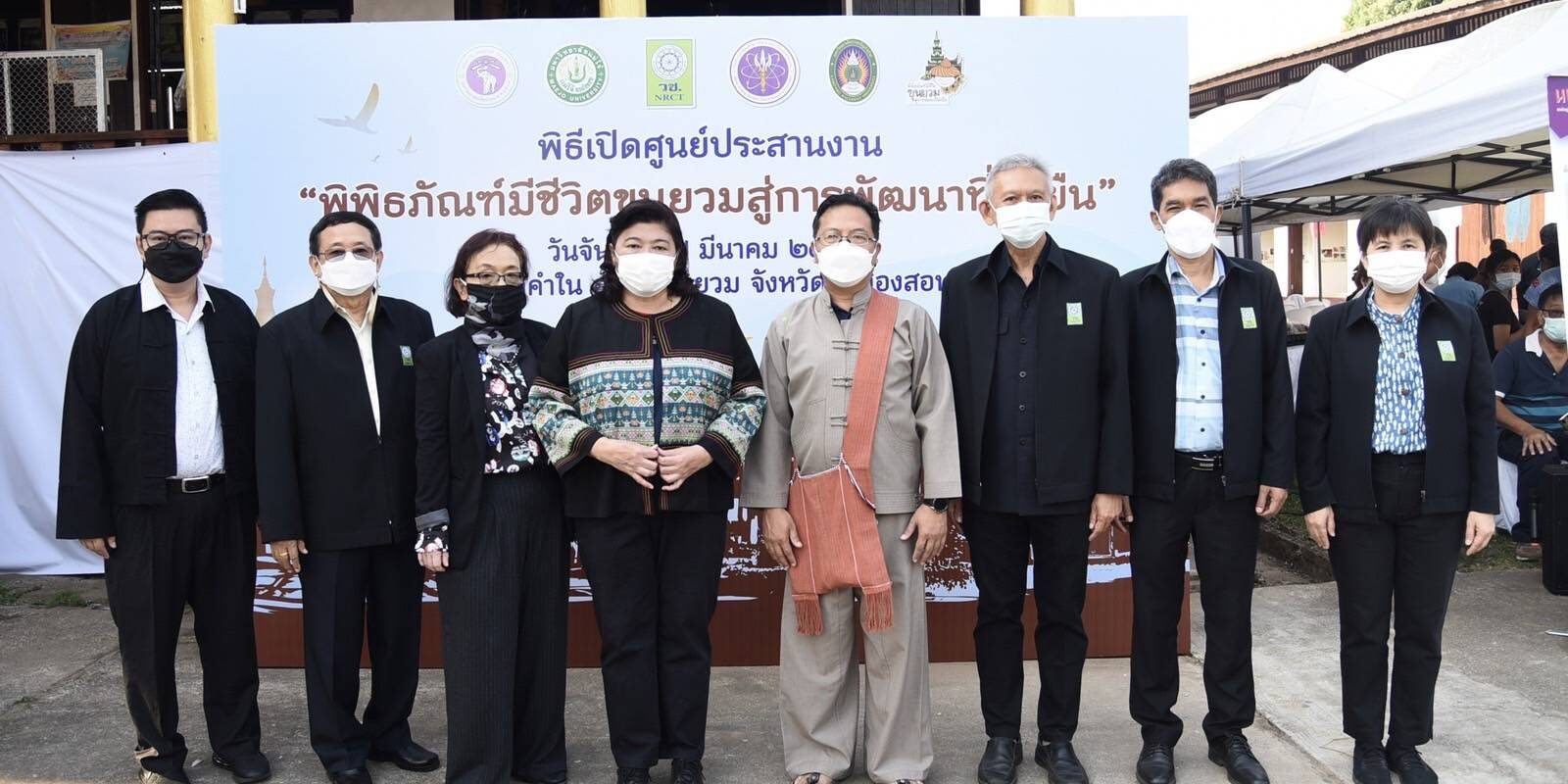 เมื่อวันที่ 7 มีนาคม 2565 : ดร.วิภารัตน์ ดีอ่อง ผู้อำนวยการสำนักงานการวิจัยแห่งชาติ (วช.) เป็นประธาน เปิดศูนย์ประสานงาน“พิพิธภัณฑ์มีชีวิตขุนยวมสู่การพัฒนาที่ยั่งยืน” พร้อมด้วยผู้ทรงคุณวุฒิ (วช.),รองผู้ว่าราชการจังหวัดแม่ฮ่องสอน,ผู้นำชุมชนท้องถิ่นในอำเภอขุนยวม,เครือข่ายนักวิจัย มหาวิทยาลัยเชียงใหม่,มหาวิทยาลัยแม่โจ้ และมหาวิทยาลัยราชภัฏลำปาง ให้เกียรติเข้าร่วมในพิธีเปิดศูนย์ฯ ณ วัดคำใน อำเภอขุนยวม จังหวัดแม่ฮ่องสอน เพื่อนำองค์ความรู้จากการวิจัยมาบูรณาการกิจกรรมของพิพิธภัณฑ์มีชีวิตขุนยวม พร้อมส่งมอบบัญชีศิลปวัตถุแก่วัดม่วยต่อ และวัดคำใน เพื่อการอนุรักษ์เก็บรักษามรดกทางวัฒนธรรมของชาติต่อไป