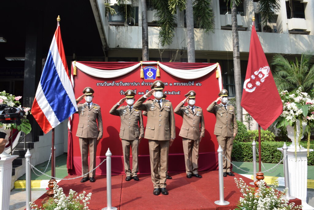 วันที่ 11 มีนาคม 2565 ที่กองบัญชาการตำรวจภูธรภาค 1 (บช.ภ.1) : พล.ต.อ.รอย อิงคไพโรจน์ รอง ผบ.ตร. เป็นประธานพิธีสักการะสิ่งศักดิ์สิทธิ์ประจำตำรวจภูธรภาค 1 พิธีวางพวงมาลาหน้าอนุสาวรีย์ผู้พิทักษ์รับใช้ประชาชน เพื่อเป็นการแสดงความเคารพและไว้อาลัยแก่ข้าราชการตำรวจที่เสียชีวิตในการปฏิบัติหน้าที่ และพิธีสงฆ์ เนื่องในวันคล้ายวันสถาปนาตำรวจภูธรภาค 1 ครบรอบปีที่ 46 โดยภายในงานมี พล.ต.ท.จิรพัฒน์ ภูมิจิตร ผบช.ภ.1 พร้อมด้วย คณะ รอง ผบช.ภ.1,ผบก.ในสังกัด บช.ภ.1,คณะแม่บ้านตำรวจภูธรภาค 1 และข้าราชการตำรวจในสังกัดตำรวจภูธรภาค 1 รวมถึงอดีตผู้บังคับบัญชาตำรวจภูธรภาค 1 และคณะกต.ตร.ภาค 1 เข้าร่วมพิธี