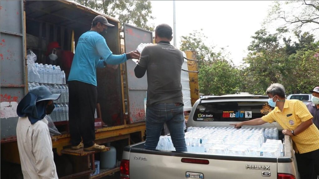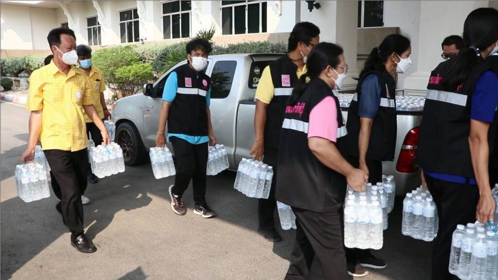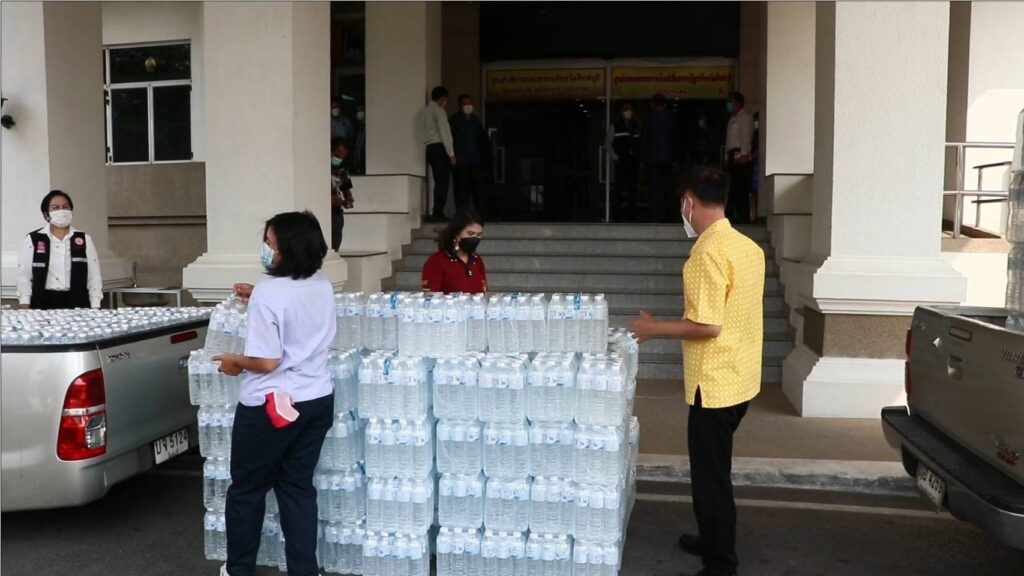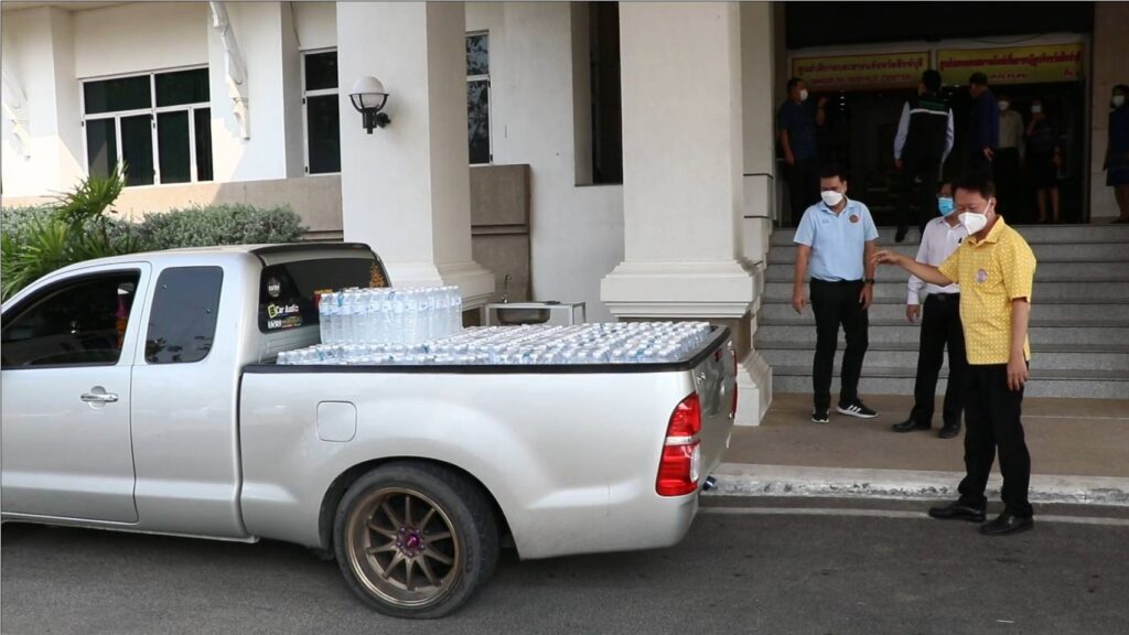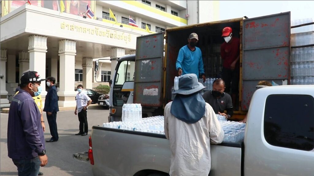 วันศุกร์ ที่ ๑๑ มีนาคม ๒๕๖๕ เวลา ๐๙.๓๐ น. นายชัยชาญ สิทธิวิรัชธรรม ผู้ว่าราชการจังหวัดสิงห์บุรี เป็นประธานรับมอบน้ำดื่ม 1,000 โหล พร้อมชุด ppe จำนวน 20 ชุด ถุงมือทางการแพทย์ จำนวน 10 กล่อง ณ ศาลากลางจังหวัดสิงห์บุรี หลังใหม่ จากนายวิจิตร เลิศไพบูลย์วงศ์ ประธานอนุกรรมการศูนย์ส่งเสริมความรับผิดชอบต่อสังคมของภาคธุรกิจและกลุ่มการพัฒนาสังคมและสวัสดิการ ให้แก่โรงพยาบาลสนามและศูนย์พักคอยกลางประจำอำเภอทั้ง 6 อำเภอ จำนวน ๘๐๐ โหล และมอบให้สำนักงานพัฒนาสังคมและความมั่นคงของมนุษย์จังหวัดสิงห์บุรี จำนวน ๒๐๐ โหล เพื่อสนับสนุนการขับเคลื่อนการดำเนินงานศูนย์ส่งเสริมความรับผิดชอบต่อสังคมของภาคธุรกิจระดับจังหวัด ส่งเสริมให้ภาคธุรกิจมีการดำเนินงานด้านความรับผิดชอบต่อสังคม ประชาสัมพันธ์การดำเนินงานศูนย์ส่งเสริมความรับผิดชอบต่อสังคมของภาคธุรกิจระดับจังหวัดสิงห์บุรี โดยมี นายปรัชญา เปปะตังปลัดจังหวัดสิงห์บุรี นายอำเภอทุกอำเภอ นายแพทย์สาธารณสุขจังหวัดสิงห์บุรี พัฒนาสังคมและความมั่นคงของมนุษย์จังหวัดสิงห์บุรีและภาคเอกชน เข้าร่วมรับมอบน้ำดื่มเพื่อนำไปส่งมอบให้กับโรงพยาบาลสนามกับศูนย์พักคอยผู้ป่วยโควิดกลุ่มสีเขียว และผู้ประสบปัญหาความทุกข์ยากเดือดร้อนจากสถานการณ์โควิด-19 ที่กำลังระบาดอยู่ในขณะนี้