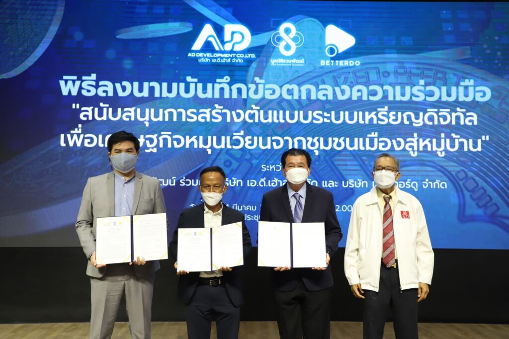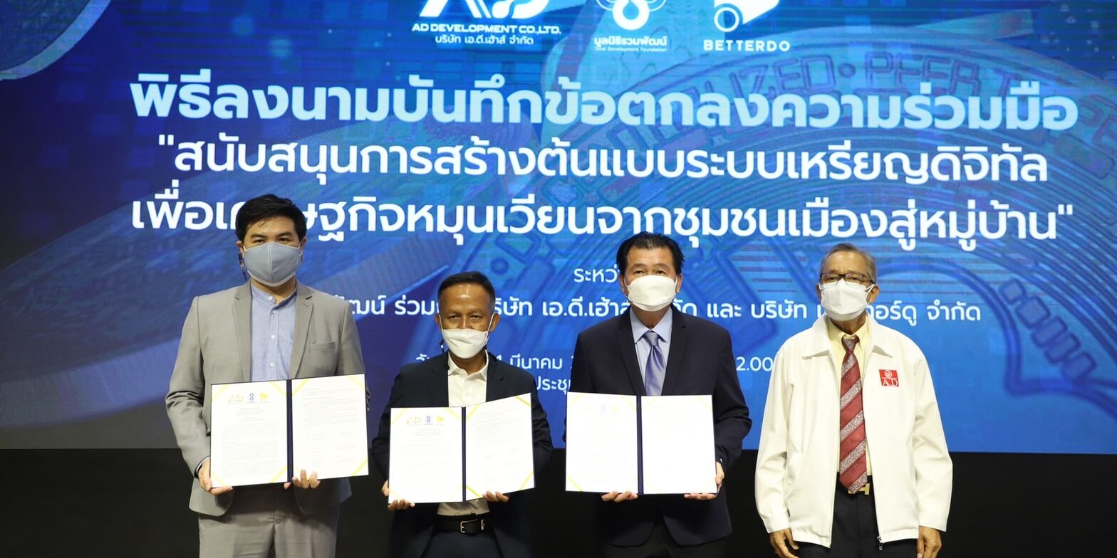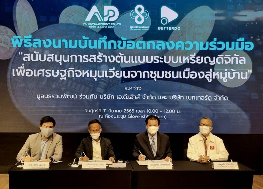 ซึ่งพัฒนา โดย นายธนกฤช โชควรทรัพย์ ประธาน บริษัท เอ.ดี เฮ้าส์ จำกัด อันมีความพร้อมให้บริการมากกว่า 1,000 ยูนิต ในเมืองท่องเที่ยวจำนวนมากทั้งใน พัทยา ชะอำ และหัวหิน เป็นต้น ร่วมกับ ผู้พัฒนานวัตกรรมดิจิทัลโทเคน นายธนภัทร บัวลอย ประธานเจ้าหน้าที่บริหาร บริษัท เบทเทอร์ดู จำกัด เจ้าของสิทธิบัตรระบบจัดการข้อมูลการทำงานร่วมกันด้วยโทเคน BETTER point และ ระบบ Community Service Tokenize ที่จะช่วยสร้างเศรษฐกิจหมุนเวียนในระบบเหรียญดิจิทัล
