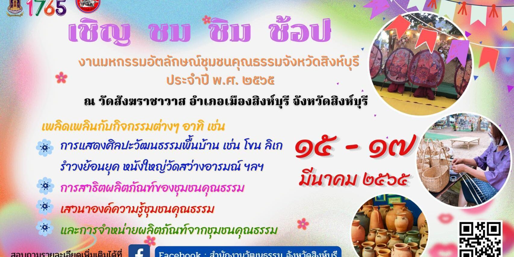 นายชัยชาญ สิทธิวิรัชธรรม ผู้ว่าราชการจังหวัดสิงห์บุรี เปิดเผยว่า จังหวัดสิงห์บุรีโดยสำนักงานวัฒนธรรมจังหวัดสิงห์บุรี ร่วมกับชุมชนคุณธรรมวัดสังฆราชาวาส กำหนดจัดงานมหกรรมอัตลักษณ์ของชุมชนคุณธรรม จังหวัดสิงห์บุรี ประจำปี 2565 ขึ้นระหว่างวันที่ 15 – 17 มีนาคม 2565 ณ วัดสังฆราชาวาส ถนนสิงหราช ตำบลบางมัญ อำเภอเมืองสิงห์บุรี จังหวัดสิงห์บุรี