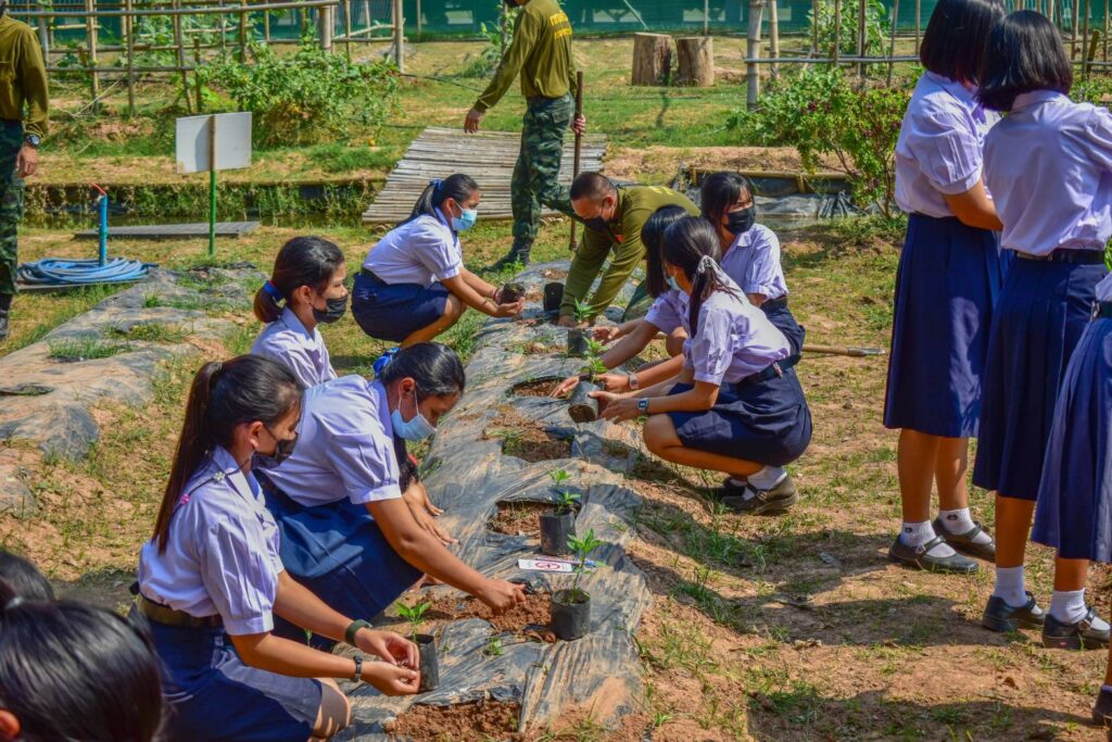 เมื่อวันที่ 10 มีนาคม 2565 กรมทหารราบที่ 8 “ทหารพันธุ์ดี” ให้การต้อนรับคณะครู นักเรียนโรงเรียนพัฒนศึกษา ต.สำราญ อ.เมือง จ.ขอนแก่น ซึ่งเป็นหนึ่งกิจกรรมของโรงเรียน “กิจกรรมศึกษาเรียนรู้เศษฐกิจพอเพียง” ซึ่งหน่วยได้นำคณะครูอาจารย์ และนักเรียน เยี่ยมชมแปลงเพาะปลูกพืชผักพระราชทานชนิดต่างๆ ได้แก่ พริกพันธุ์จินดา, ถั่วฝักยาวลายเสือจักรพันธ์, มะเขือเจ้าพระยา, ผักกูด, กระเพรา, พืชผักตามฤดูกาลต่างๆ และการคัดแยกเมล็ดพันธุ์พืช การเพาะต้นกล้า รวมทั้งการปศุสัตว์ เช่นการเลี้ยงไก่พันธุ์ประดู่หางดำ, ไก่ชีขาว, ปลาหมอเทศ, ปลาตะเพียน, ปูนา, การเลี้ยงกบทุ่งกุลา และการทำปุ๋ยหมักสูตรพระราชทานฯในโครงการฯ พร้อมให้คำแนะนำในการปฏิบัติเพิ่มเติม เพื่อให้นักเรียนได้ศึกษาเรียนรู้โครงการเศรษฐกิจพอเพียง และสามารถนำความรู้ไปประยุกต์ใช้ในชีวิตประจำวันได้ ทั้งนี้ ทางโรงเรียนยังขอรับการสนับสนุนชุดวิทยากร จากโครงการ ทหารพันธุ์ดี ร.8 เพื่ออบรมเกี่ยวกับโครงการเศรษฐกิจพอเพียงในให้กับนักเรียน ร่วมถึงการทำแปลง และการเตรียมดิน เพื่อให้เป็นโครงการอาหารกลางวันให้กับเด็กๆนักเรียน และการต่อยอด ( โครงการเยาวชน ต้นกล้าพันธุ์ดี )