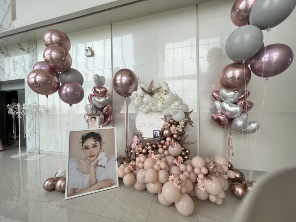 @@@โดยในวันแรกมีคนบันเทิงเข้าร่วมงาน อาทิ อั้ม พัชราภา, เอ ศุภชัย ที่เป็นเจ้าภาพจัดงานให้นางเอกสาว รวมทั้ง กึ้ง เฉลิมชัย, เอส กันตพงศ์, ไนกี้ นิธิดล, เชียร์ ฑิฆัมพร, หนิง ปณิตา, กระแต ศุภักษร เป็นต้น โดยมีเพื่อนสนิทร่วมเป็นหัวเรี่ยวหัวแรงในการจัดงาน ทั้ง โม อมีนา, อะตอม สัมพันธภาพ, โบ สุรัตนาวดี ,หนุ่ม กรรชัย และอีกหลายๆ คน และที่ขาดไม่ได้คือ แฟนหนุ่ม เบิร์ด เทคนิค ที่จัดซุ้มลูกโป่งสีโปรดของแฟนสาว และนำรูปภาพของแฟนสาวมาประดับไว้ที่ซุ้ม รวมทั้ง แหวนที่เจ้าตัวสั่งทำไว้ และตั้งใจจะมอบให้แฟนสาว มาวางไว้ที่ซุ้มลูกโป่ง ซึ่ง เบิร์ด ยังมีอาการโศกเศร้าอยู่ตลอดเวลา
